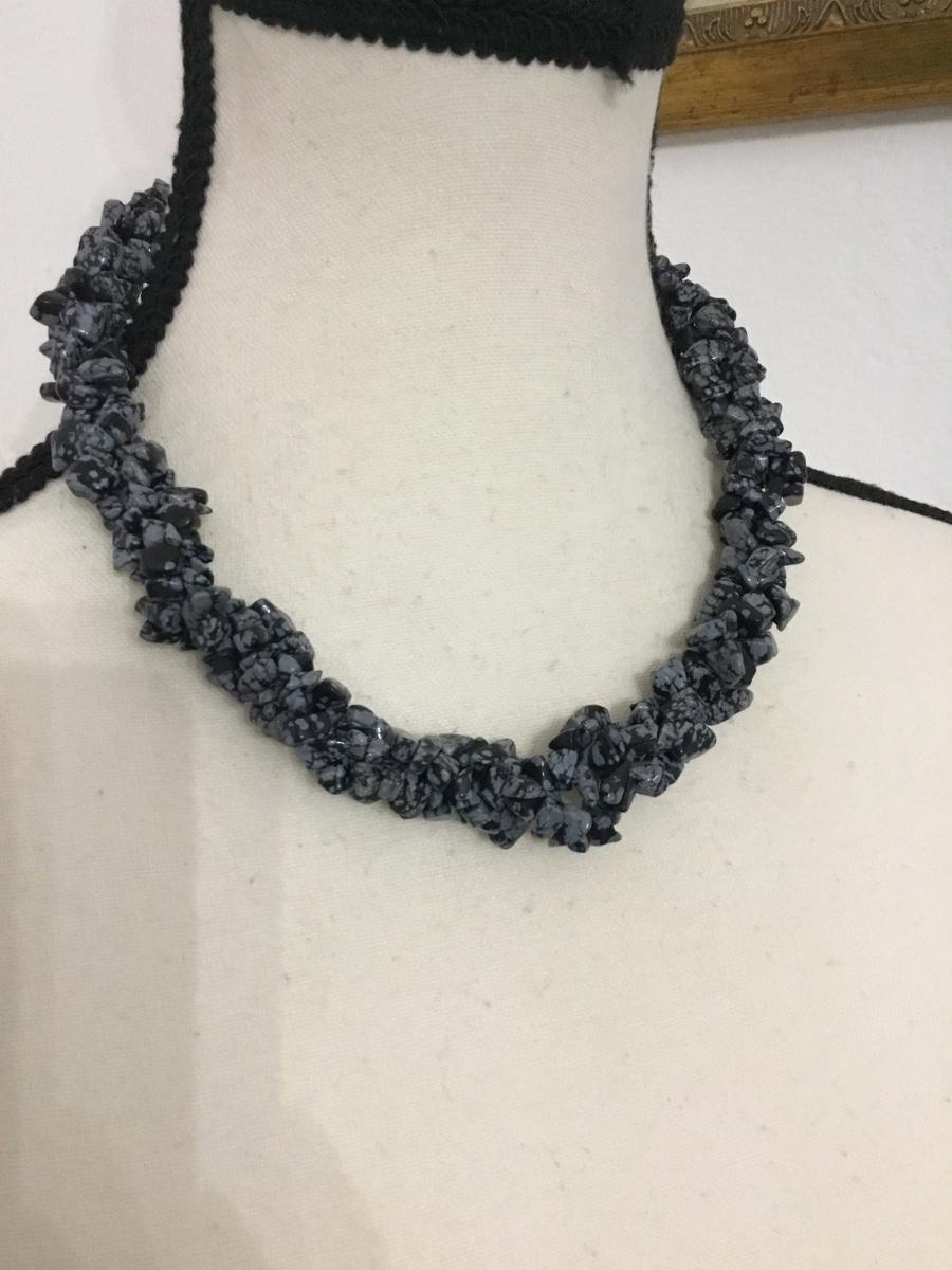 HDNY beautiful Gray and black, braided gem stone statement necklace
