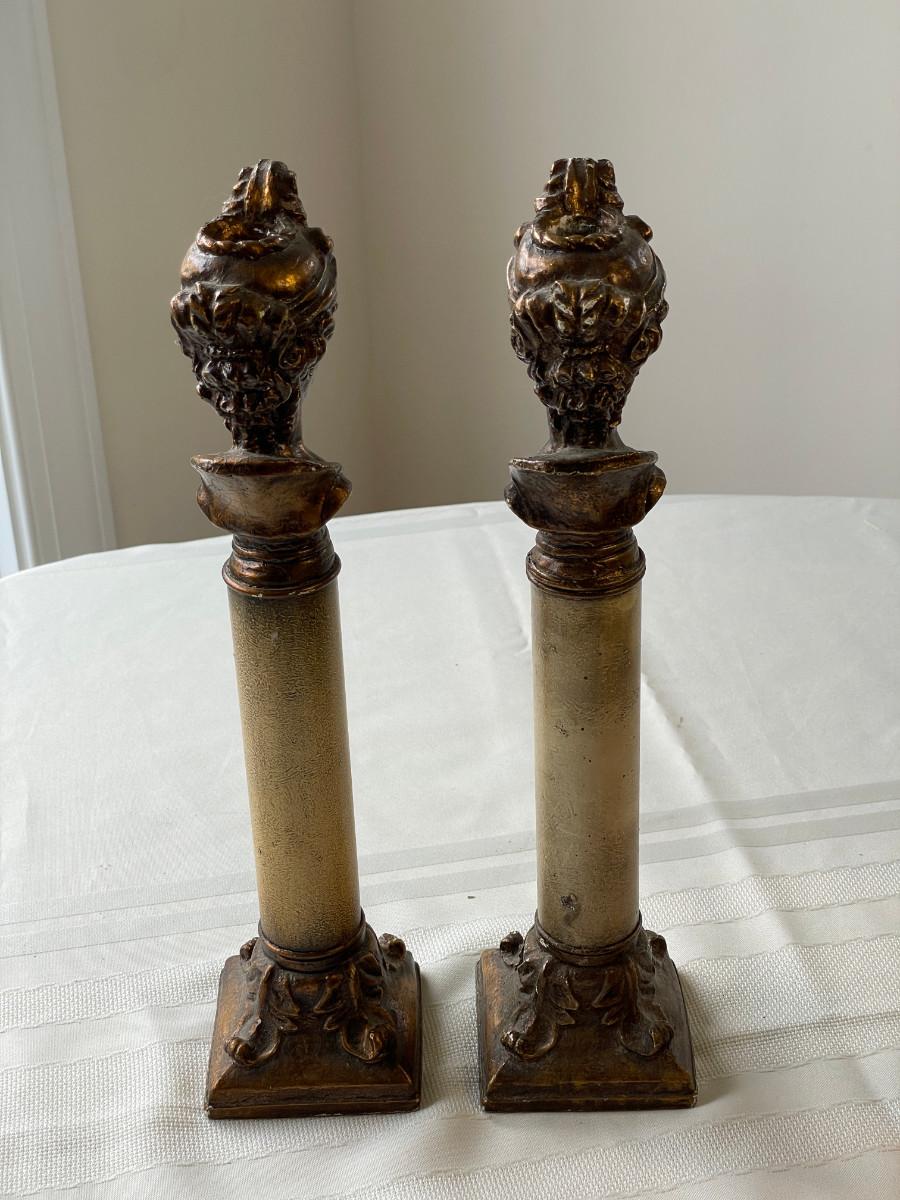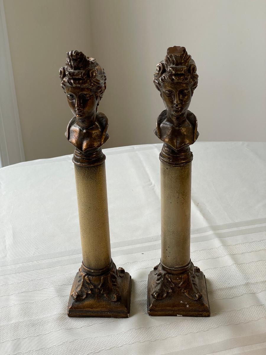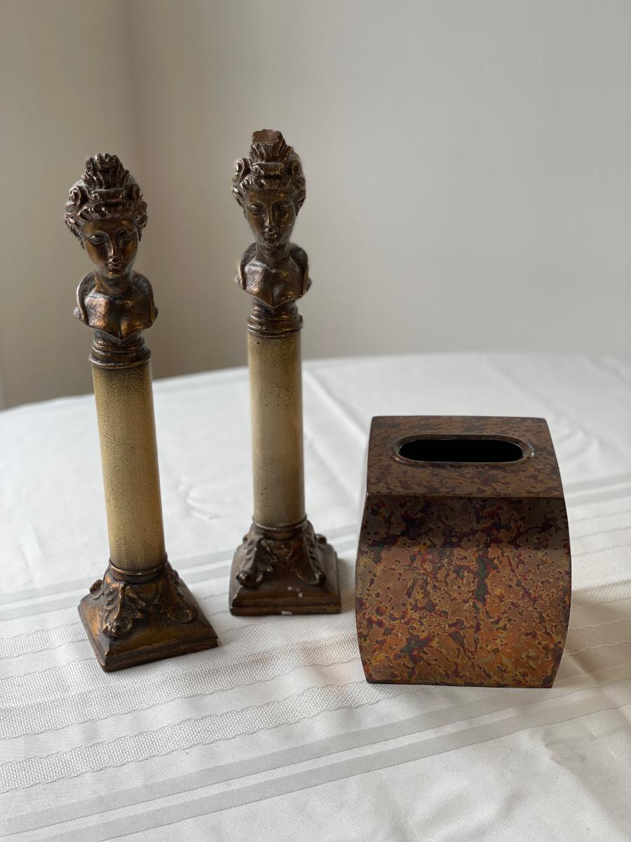 Head Bust Pedestal Candlesticks and Tissue Box Cover