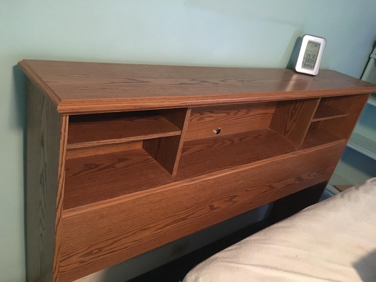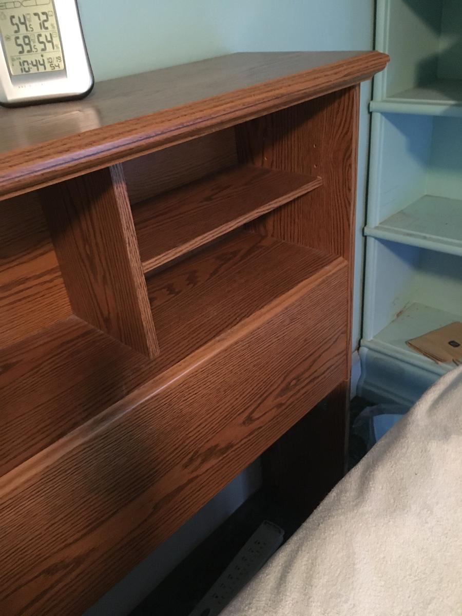 Headboard with shelves. Bring help to move from SECOND FLOOR.