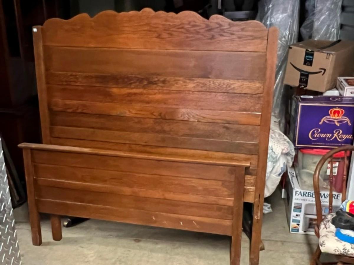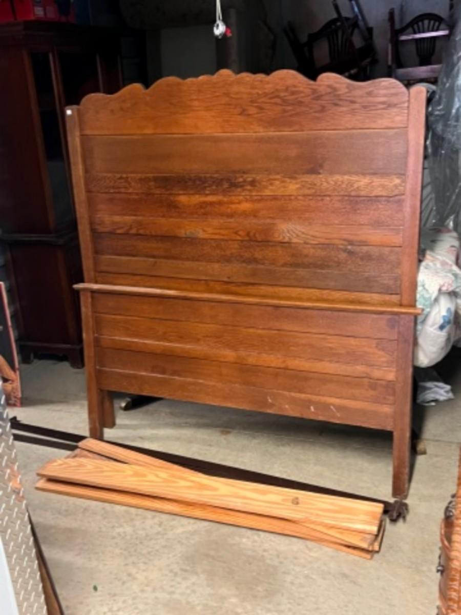 Full Headboard, foot board, rails and slats, mattress and box-spring