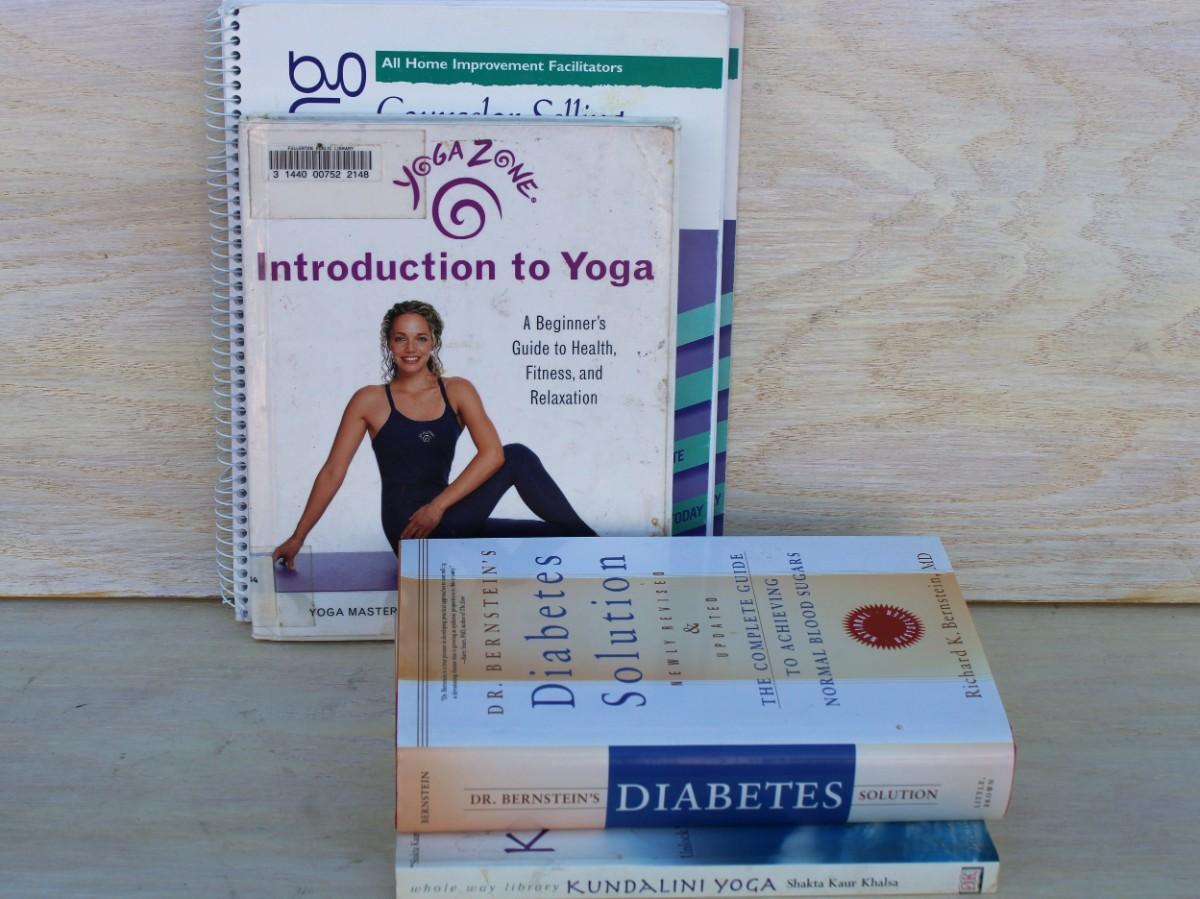 Health books; Yoga instruction manuals, diabetes and counseling
