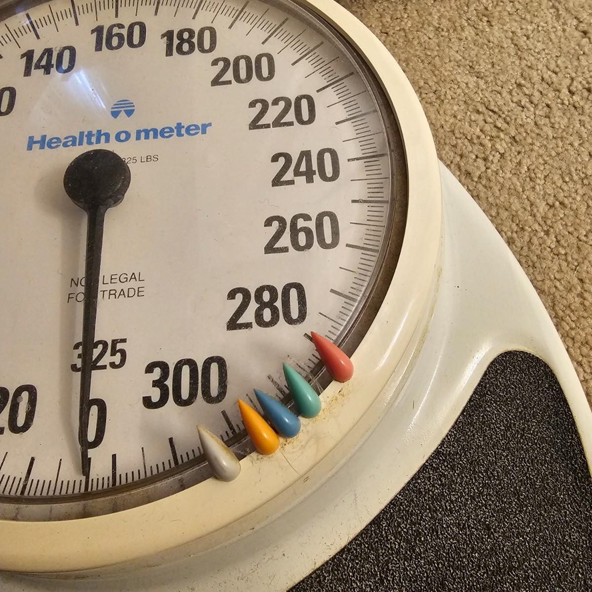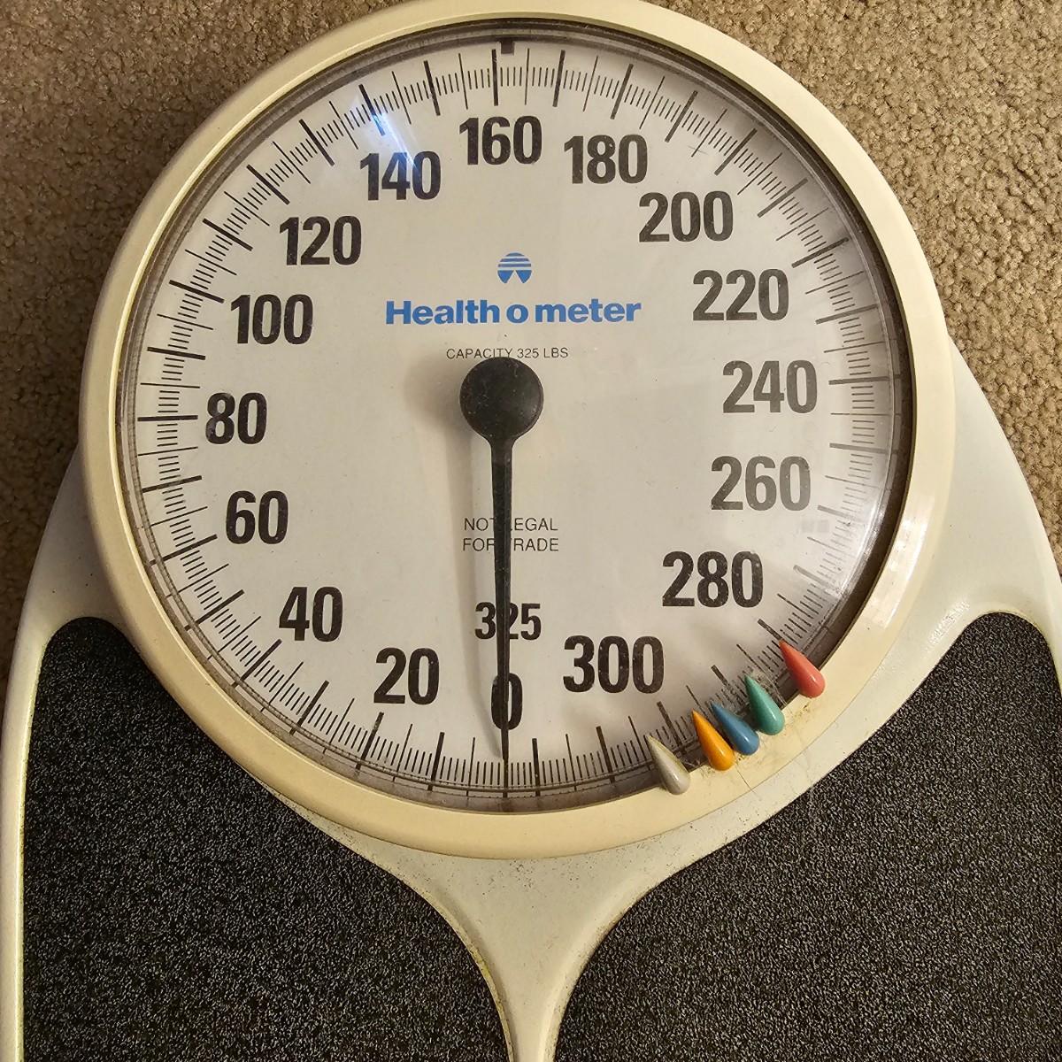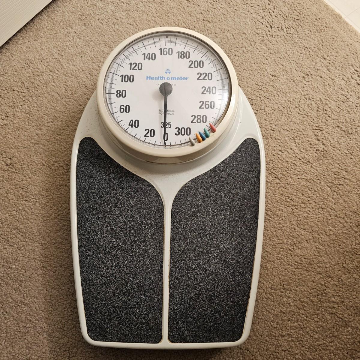 One Healthometer scales, Bigfoot model. 350 lb capacity, large easy to read dial. Non slip coating on foot pads. Measures 12" x 18" x 5" h. See photos for details. Shipping available.