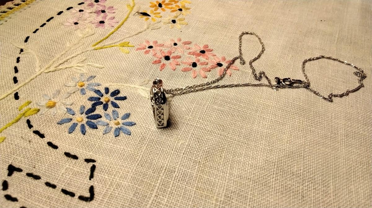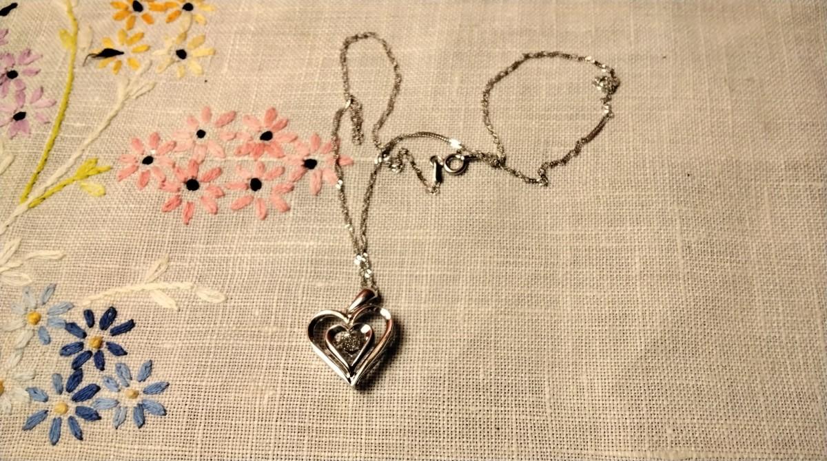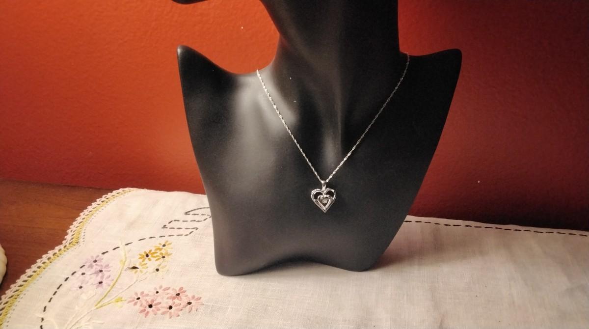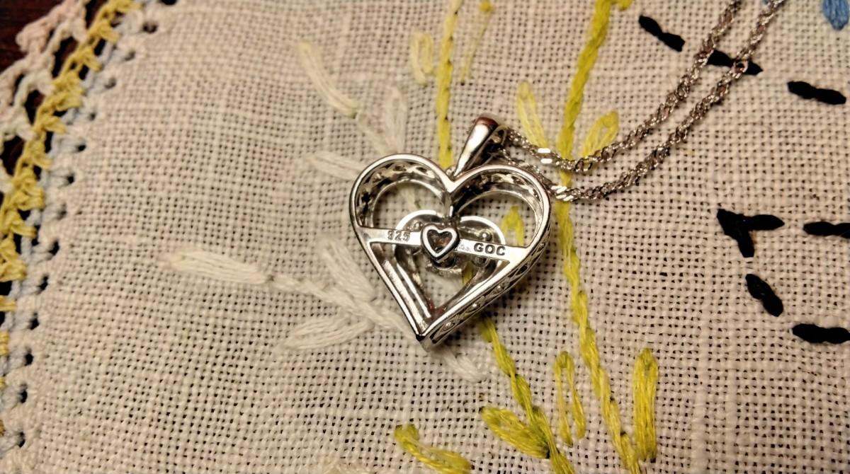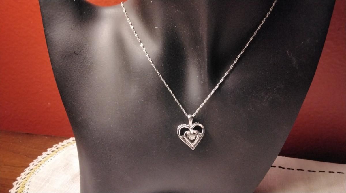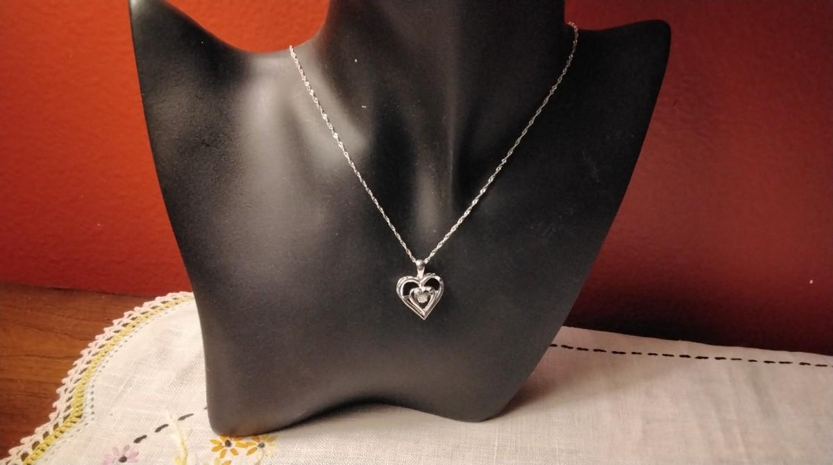 This heart is so amazingly intricate with floating diamonds in the middle and cut out hearts on the sides. Gorgeous piece!