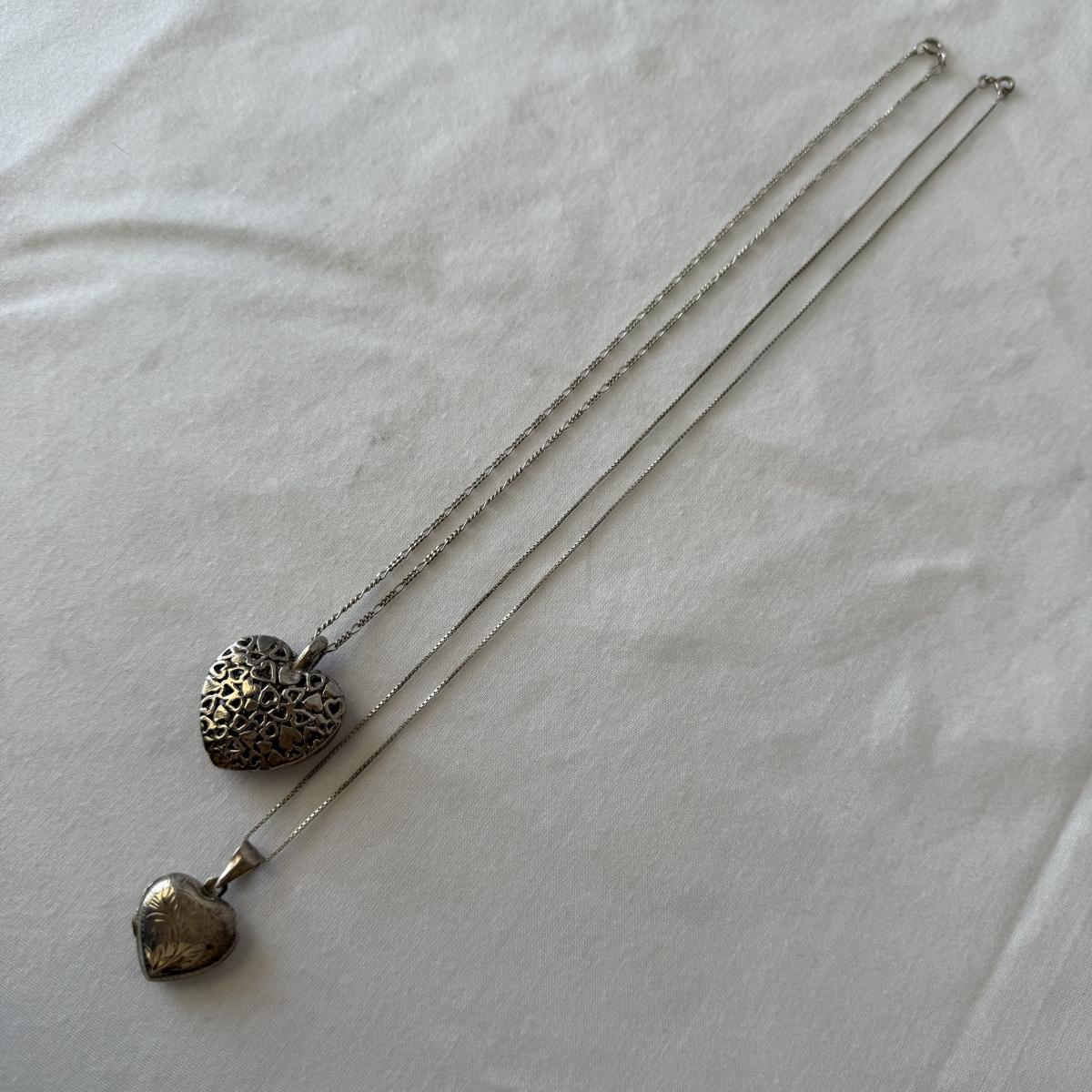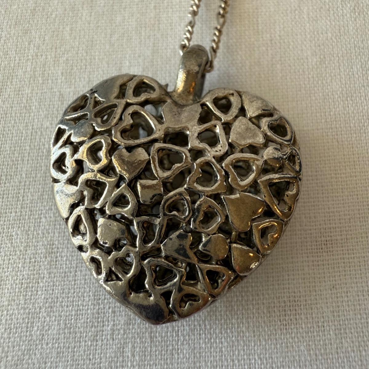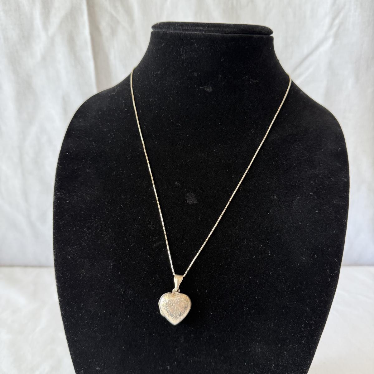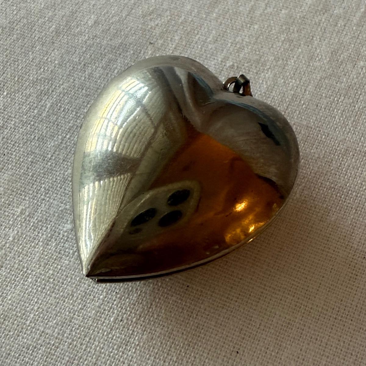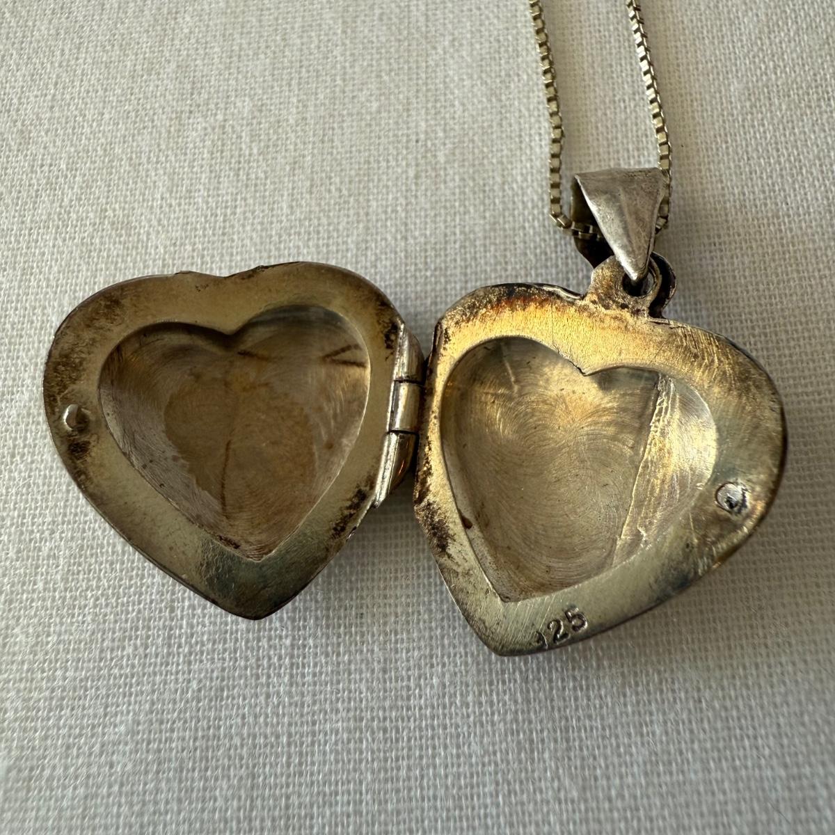 Hearts of all kinds, including heart pendants on 925 chains, a glass heart trinket box, a heart pin, a brass heart, and more. The first locket photographed is stamped 925. The brass heart appears to be solid brass - it’s heavy! The longest necklace chain is 20“. A second locket has a unique inside, see photos. Please see photos for inventory.