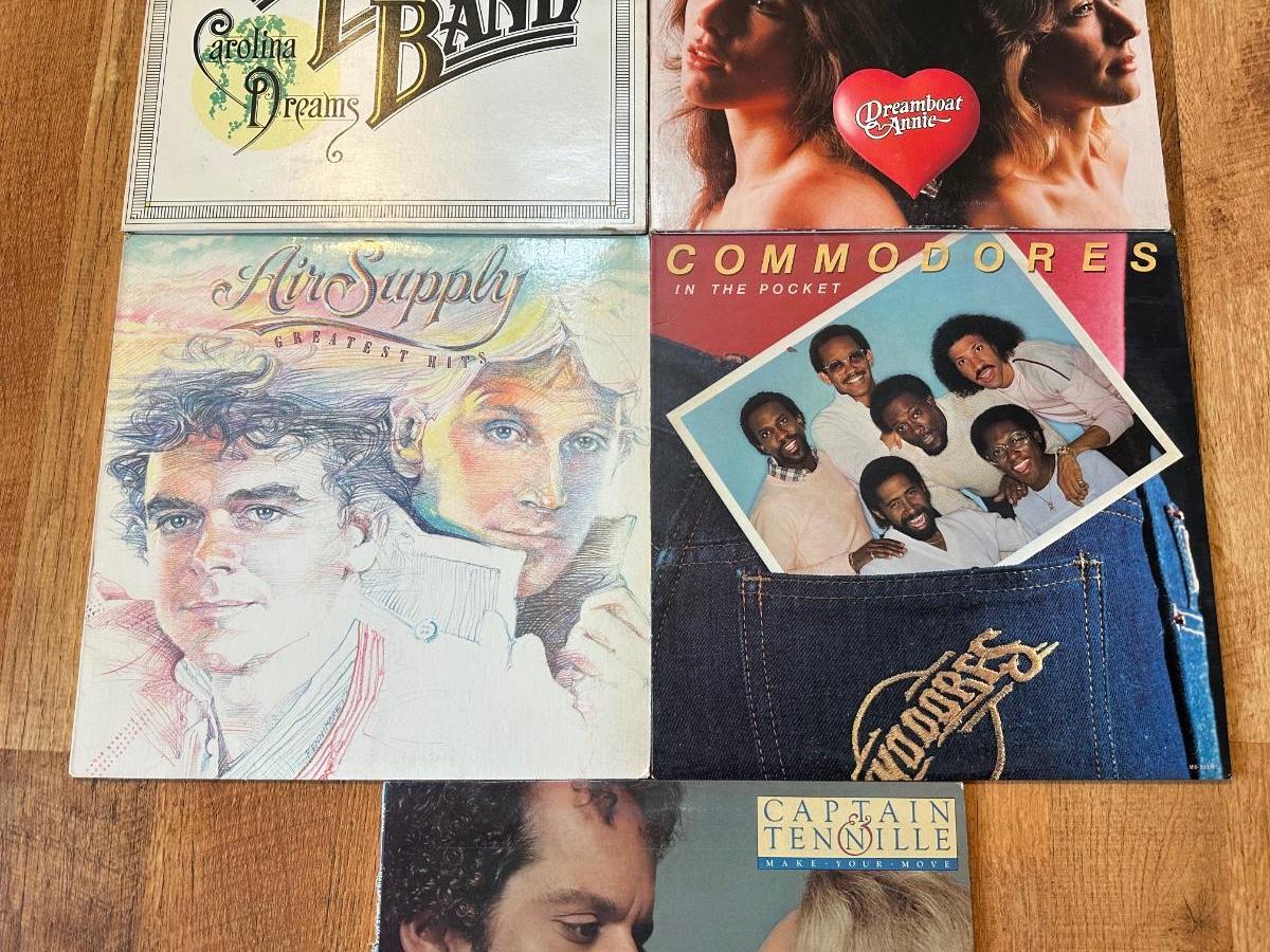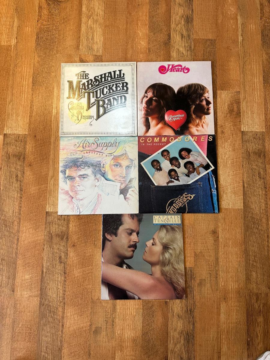 Heart - Dreamboat Annie LP, Air Supply Greatest Hits LP, Commodores - In the Pocket LP, The Marshall Tucker Band - Carolina Dreams LP and Captain Tennile - Make Your Move LP.