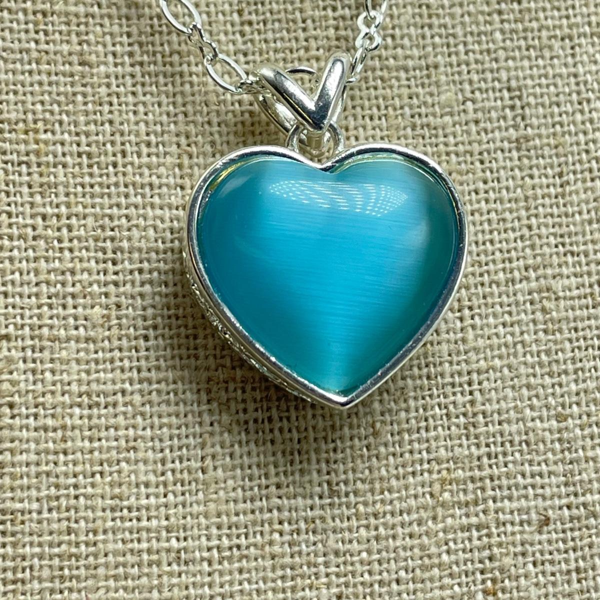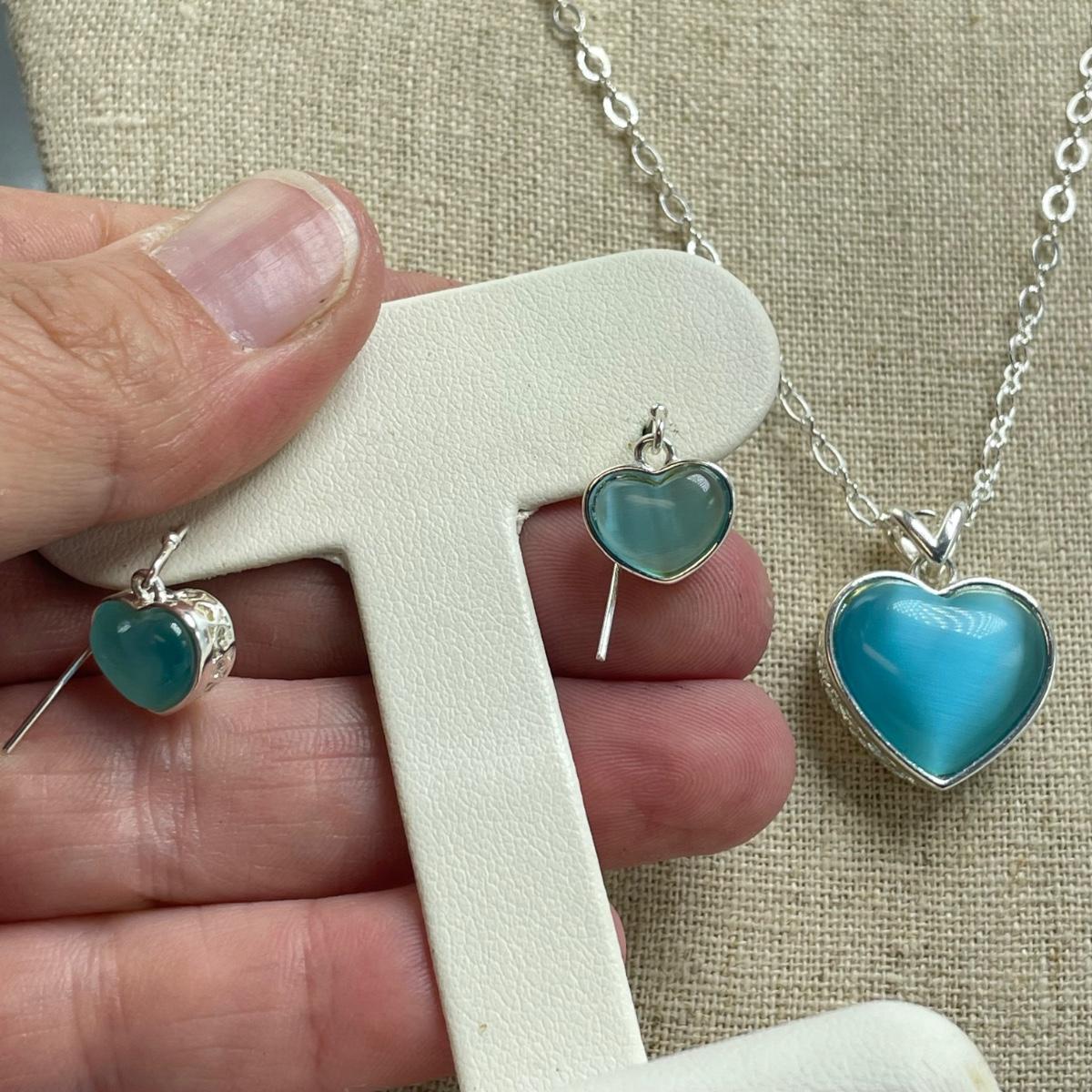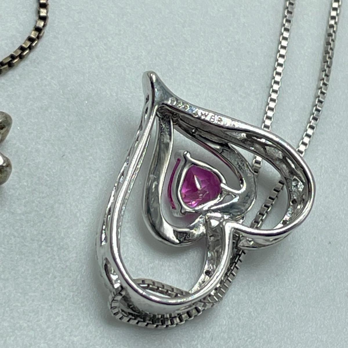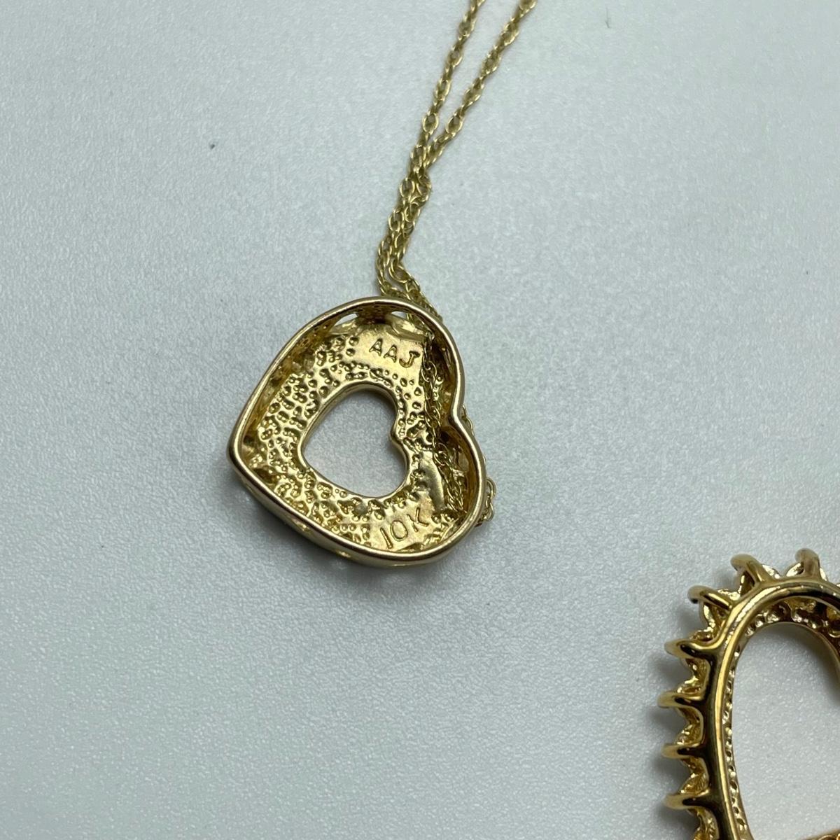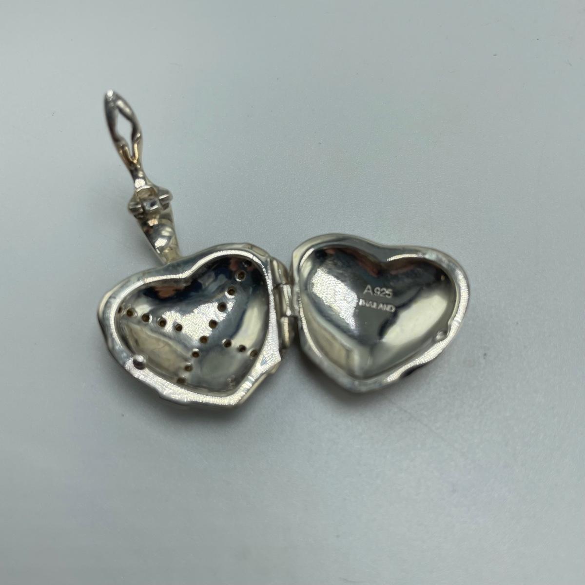 19 heart shaped pendants with chains. Lot features a 925 stamped heart pendant and chain, the gems tested as diamonds, and a pendant and chain marked 10K, both of these necklaces are shown in images with the wooden ruler. Other highlights are the earring necklace set stamped Avon, a locket on a 24” long black cord, two garnet colored pendants and more. A lot of other pieces are stamped 925. Please see photos for all markings found. We cannot guarantee the authenticity of the gemstones. All sales are final. No returns or refunds. Please bid accordingly.