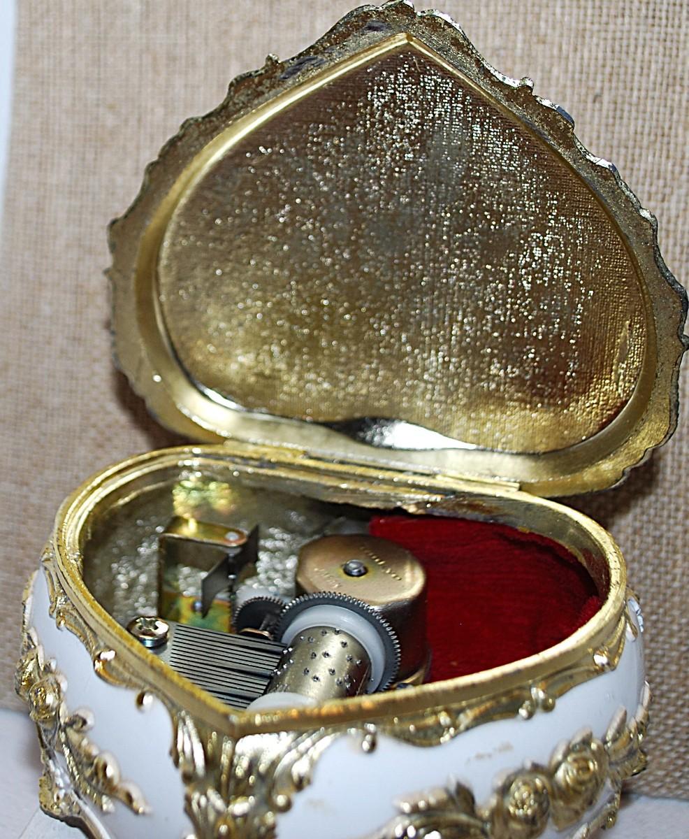 Heart Shape HINGED Trinket/Music Box COMBO (3¾" x 3½" x 2¼") - Plays "HAPPY BIRTHDAY" - "The San Francisco Music Box Company"