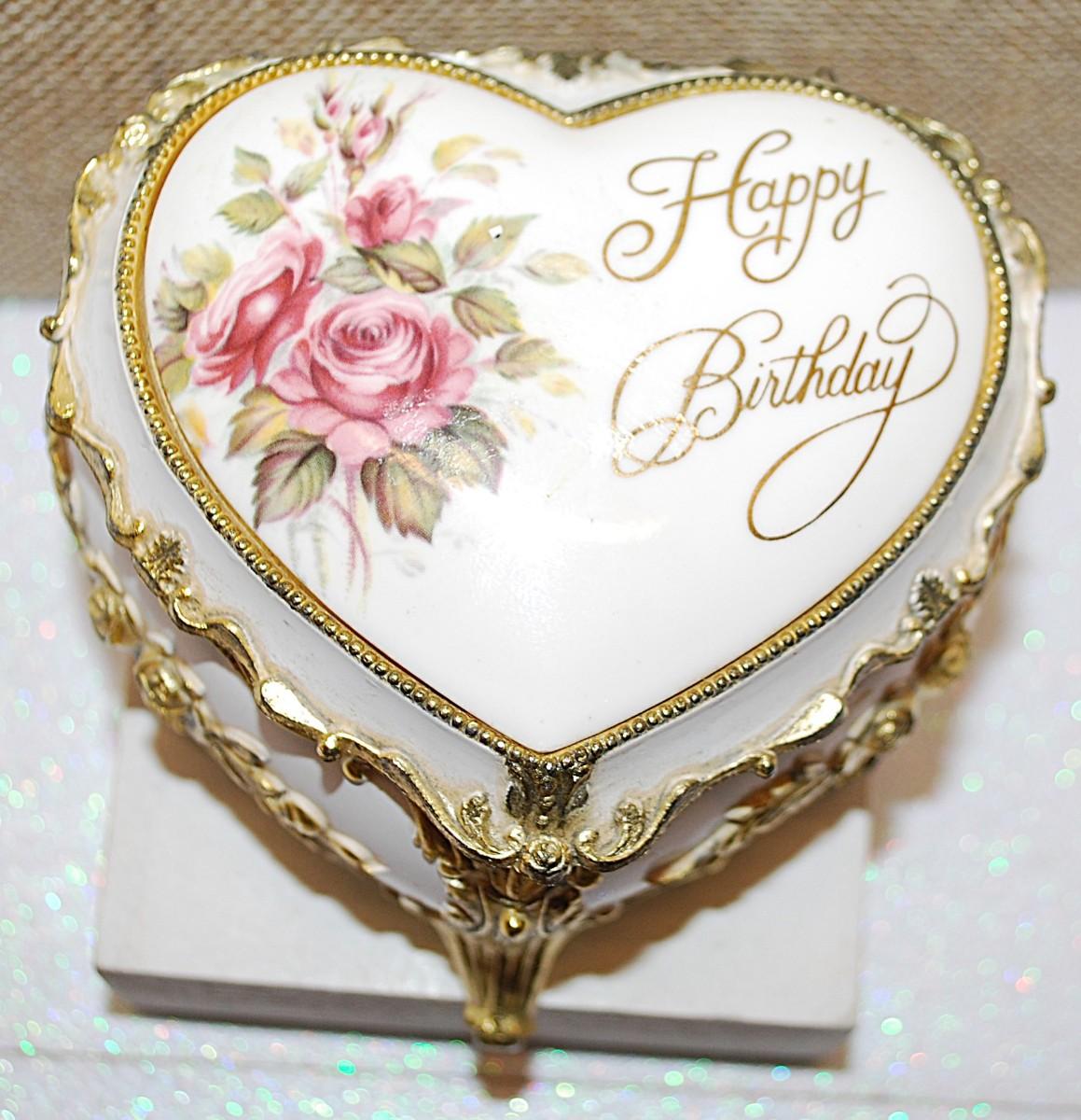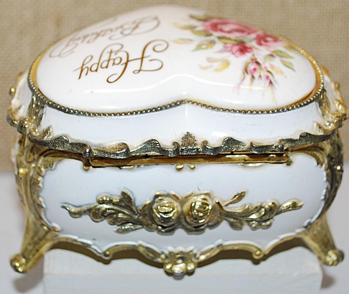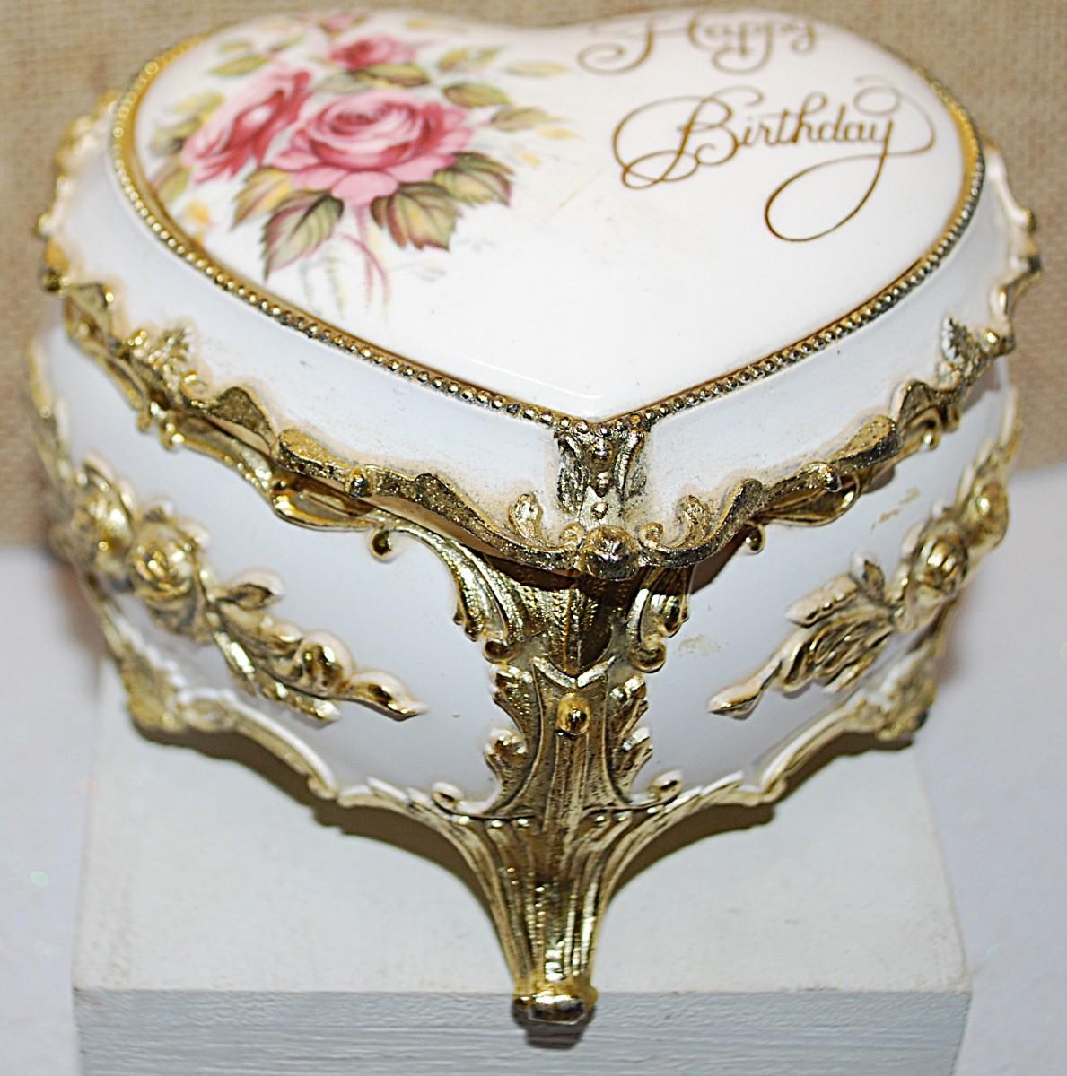 Heart Shape HINGED Trinket/Music Box COMBO (3¾" x 3½" x 2¼") - Plays "HAPPY BIRTHDAY" - "The San Francisco Music Box Company"