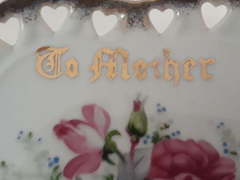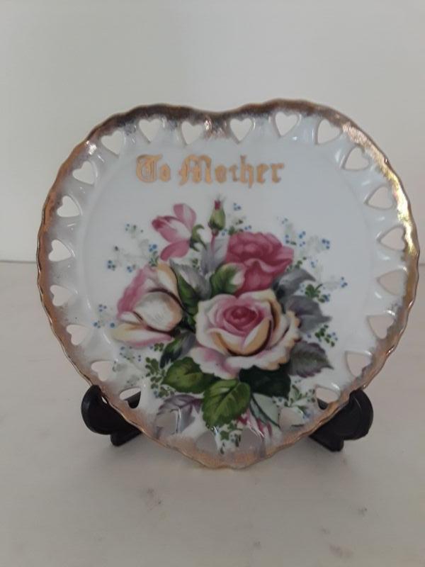 Vintage heart shape plate. Says "To Mother" on it with pink roses. Made by Lefton.