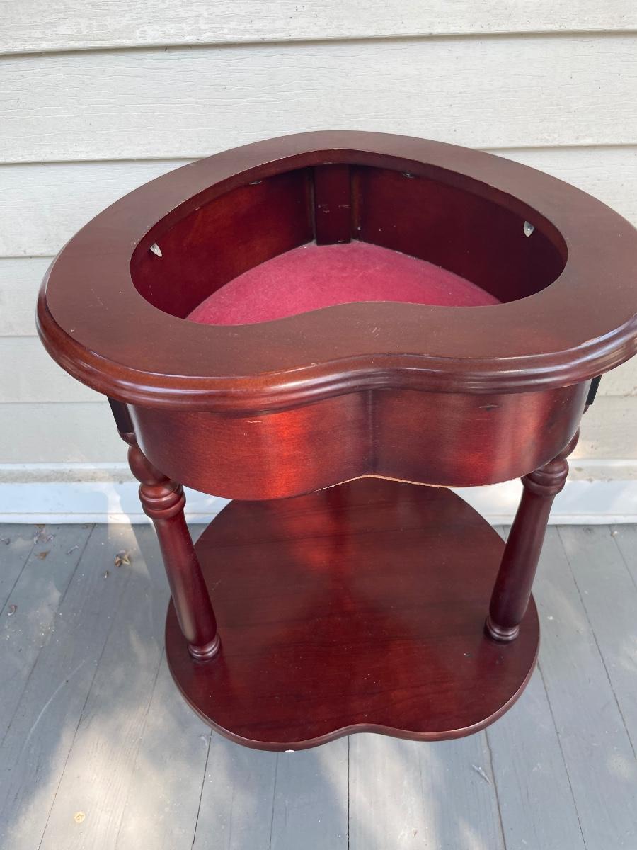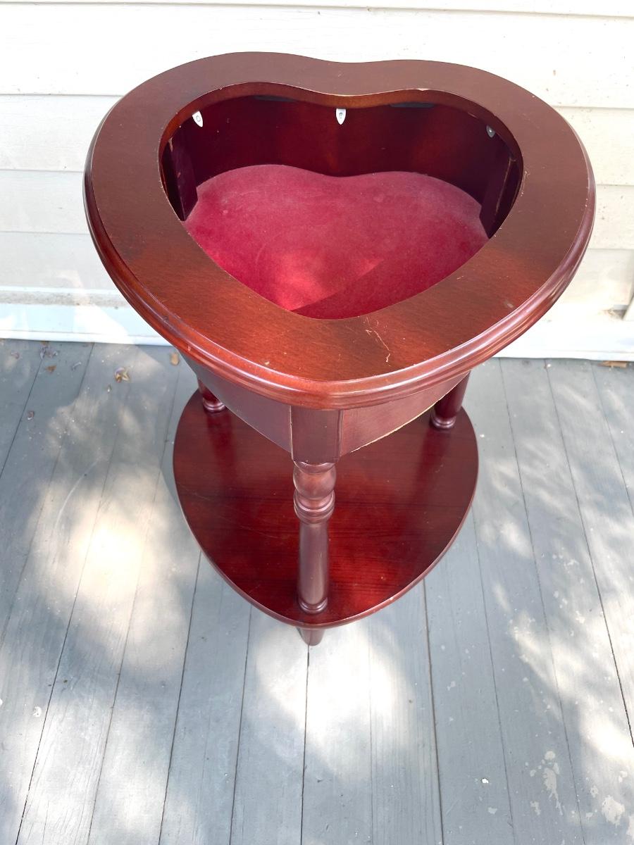 Heart Shape cherrywood Table~ No Glass. Will need a piece of glass on top. Heart shape measures 21 inches tall, 16 inches wide and 16 inches deep.
