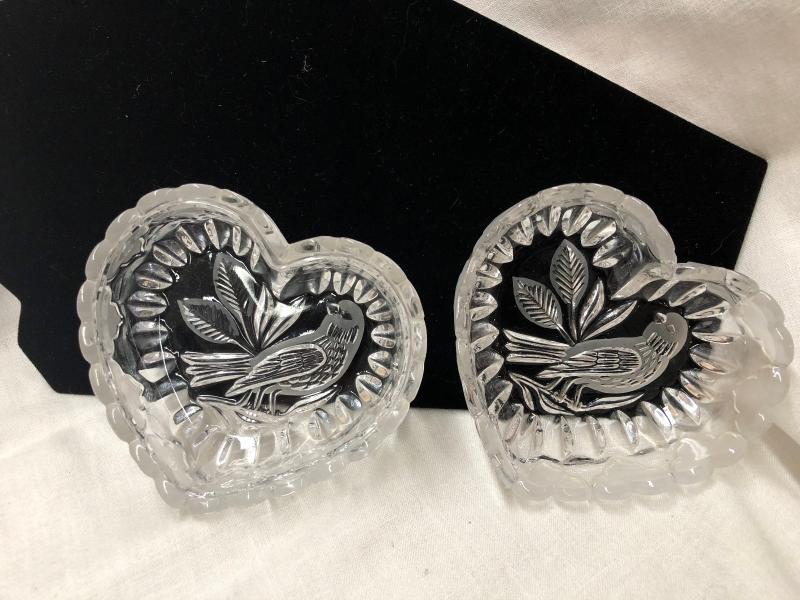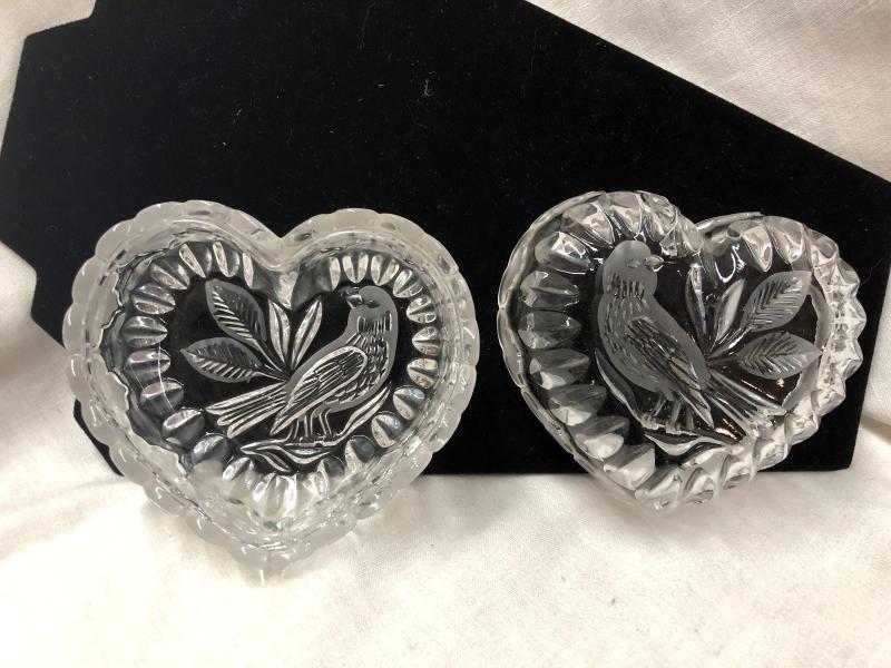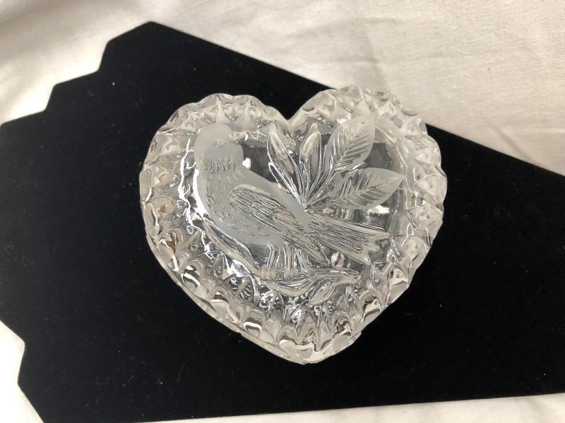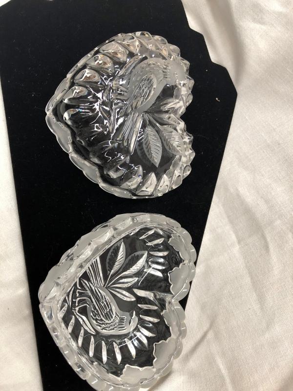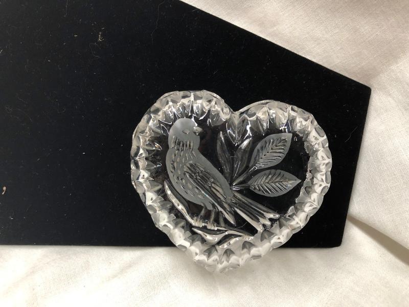 Heart Shaped Bird Engraved Glass/Crystal Bowl (Item 968)