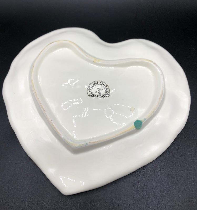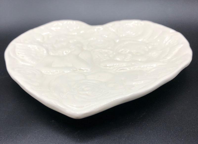 Cherubs and Roses Heart shaped trinket plate. Large, about 8". Good Condition.