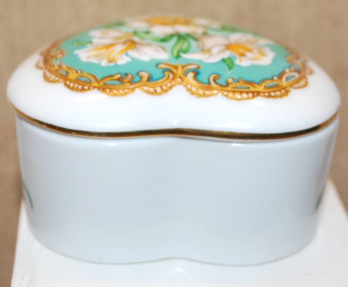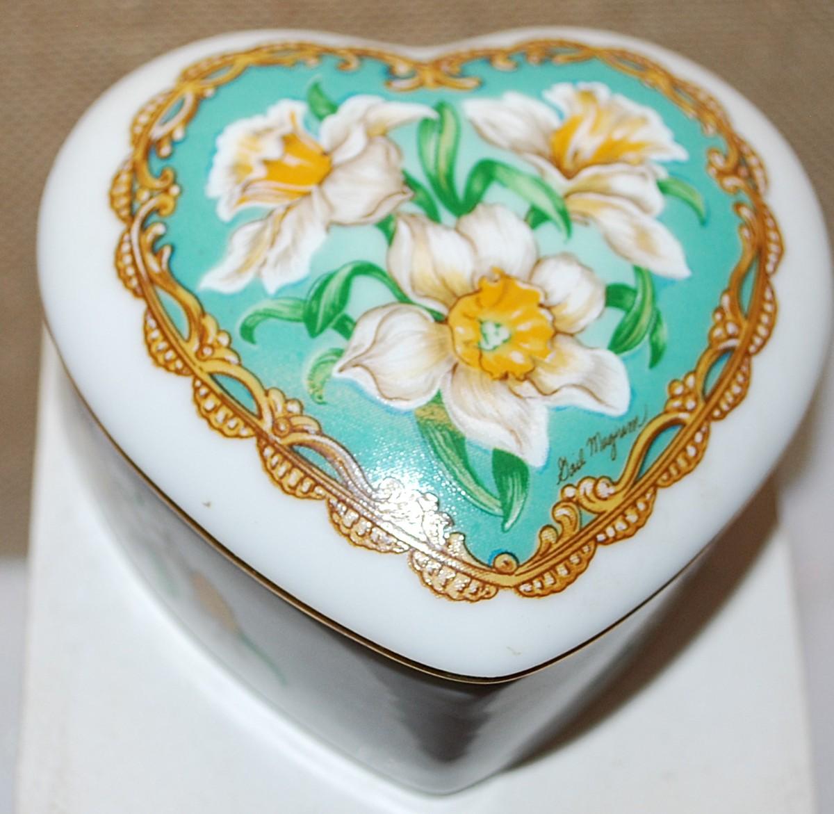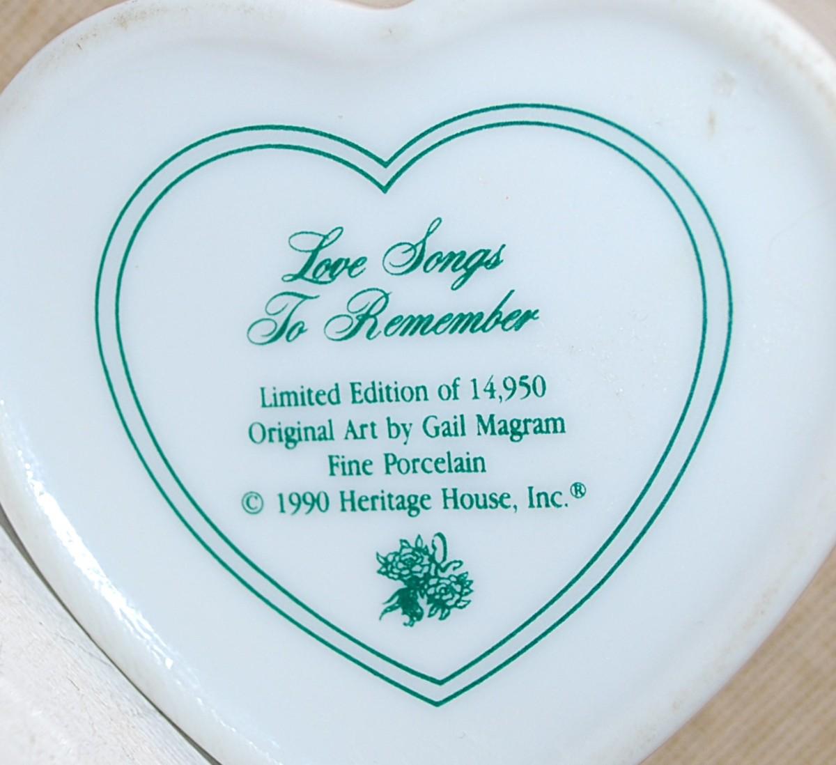 Heart Shaped Covered & Flowered Music/Trinket Box Combo 2½" W x 2½" L x 1½" H --Plays "Some Enchanted Evening" --1990 Heritage House Collection