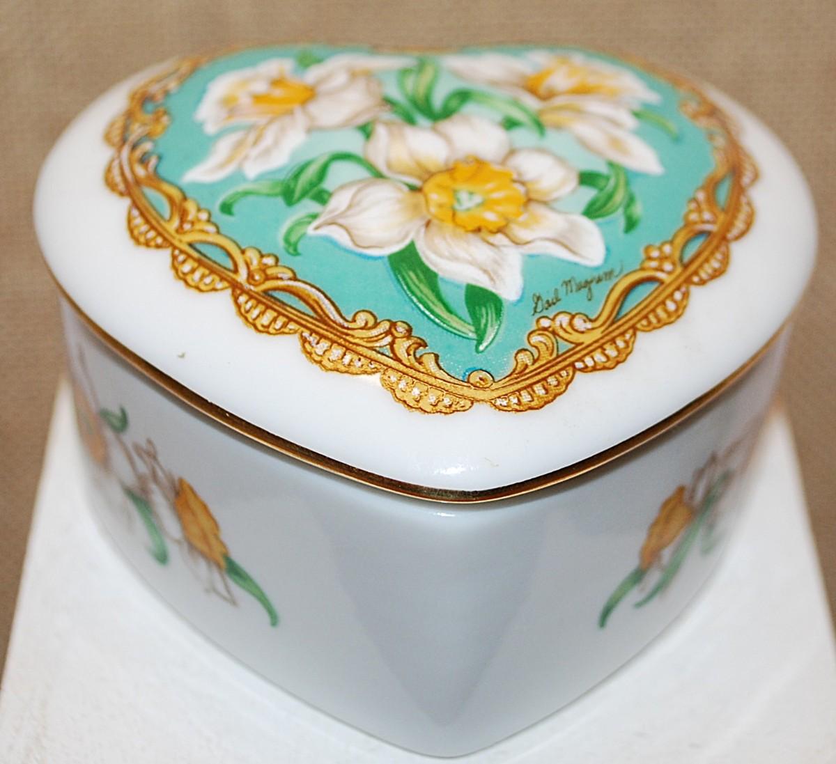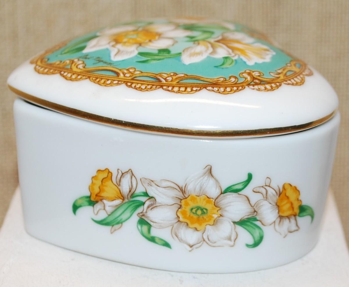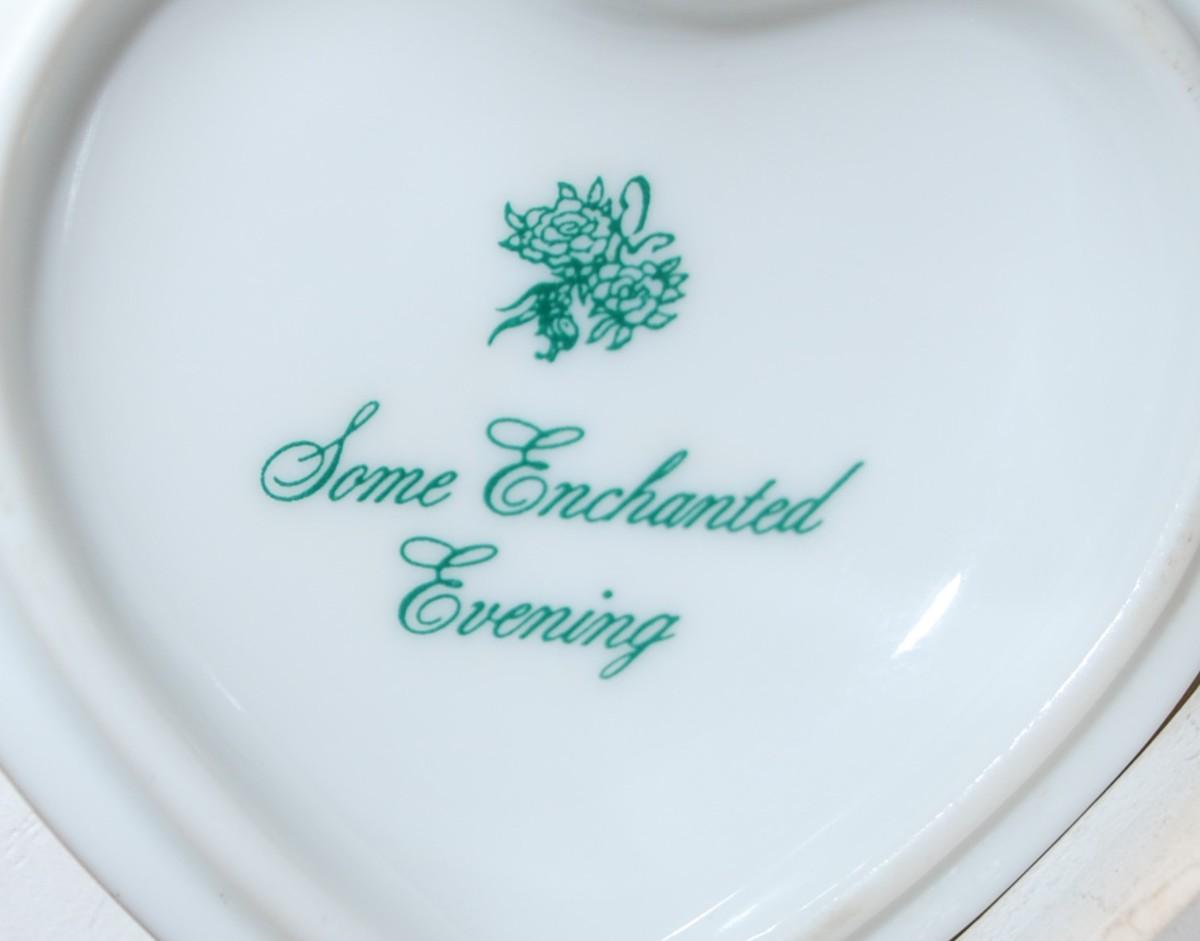 Heart Shaped Covered & Flowered Music/Trinket Box Combo 2½" W x 2½" L x 1½" H --Plays "Some Enchanted Evening" --1990 Heritage House Collection