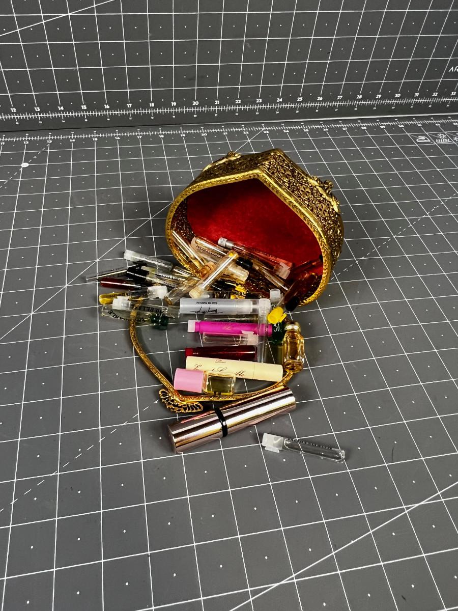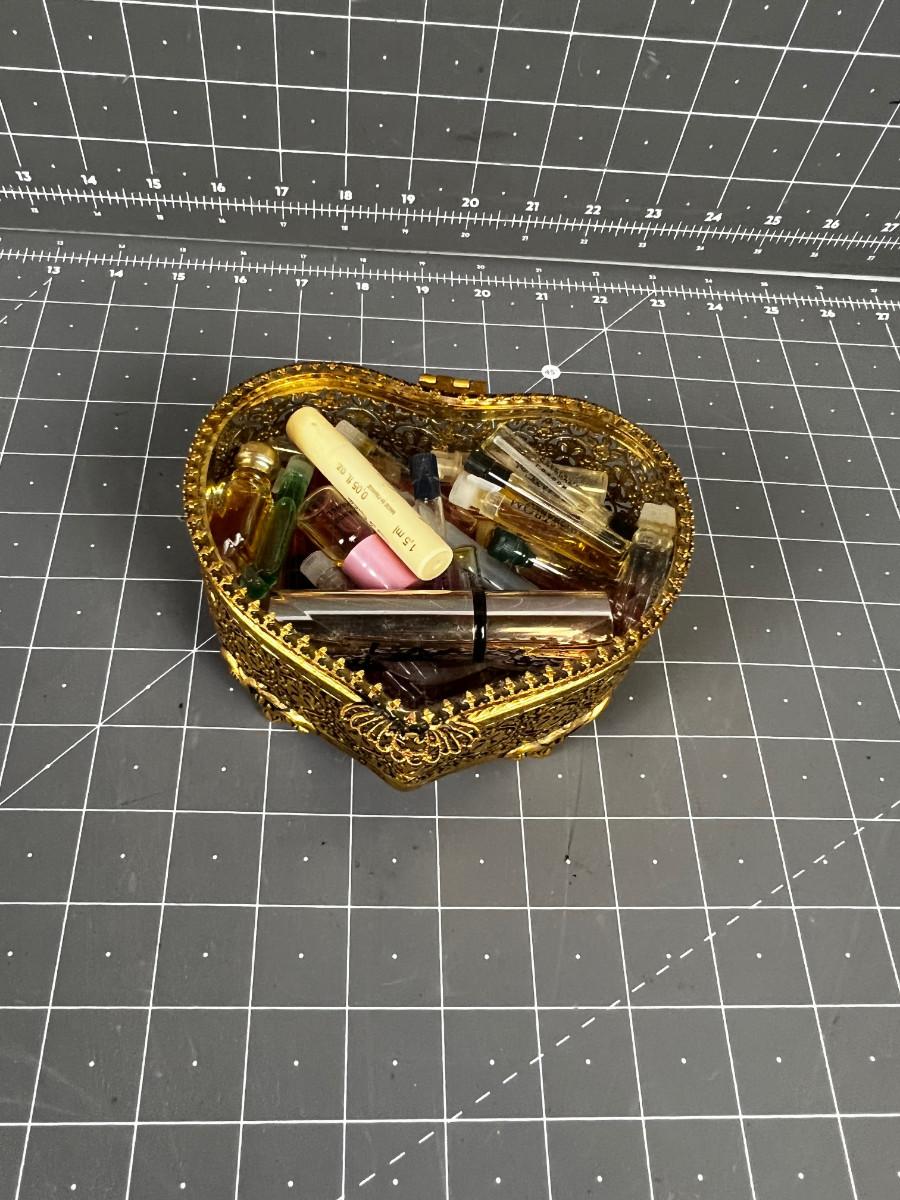 Heart Shaped Jewelry Box, Full of Tiny Sample Perfumes.