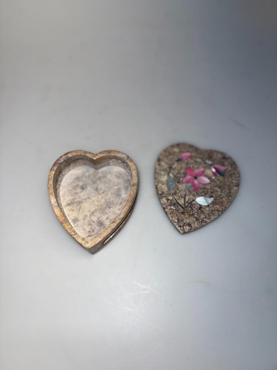 Heart Shaped Soapstone Trinket Box with Mother of Pearl Inlay