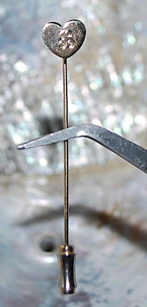 HEART with Letter "B" PIN (2½" L) with Pin Guard on a Gold Tone Setting