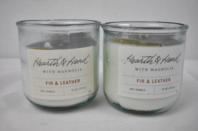Hearth & Hand Fir/Leather Candles, Set of 2, 10 oz - New