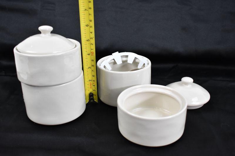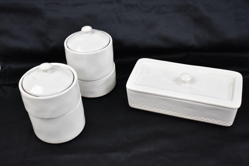 Hearth & Hand Stoneware: Holder w/ Lid & 2 Stack Canisters w/ Lids - New
