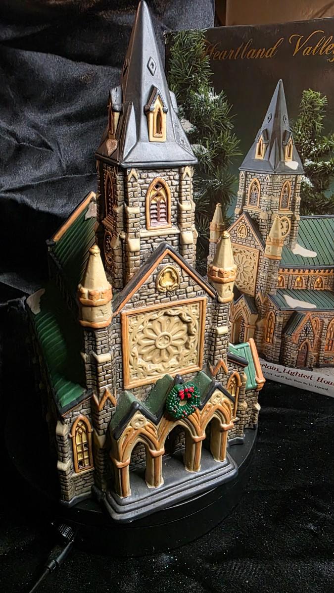 Heartland Valley Village – Illuminated Porcelain Cathedral Church | Hand-Painted Holiday Collectible