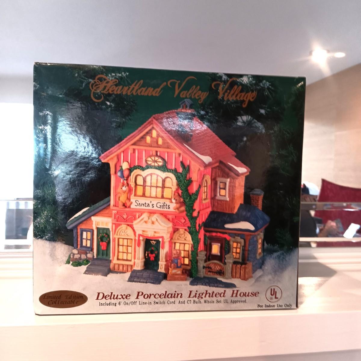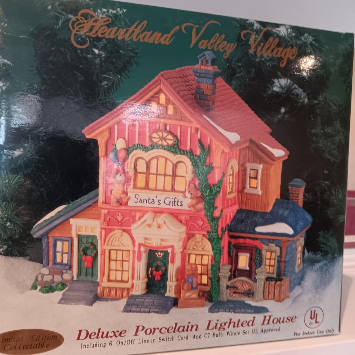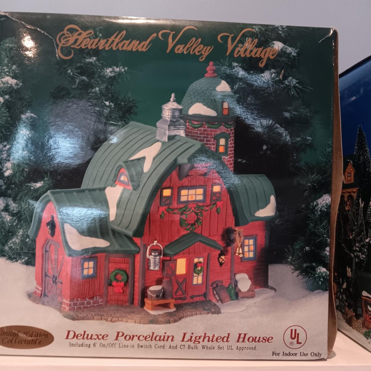 HEARTLAND VALLEY VILLAGE 'SANTA'S GIFTS" AND A BARN LIGHTED HOUSES