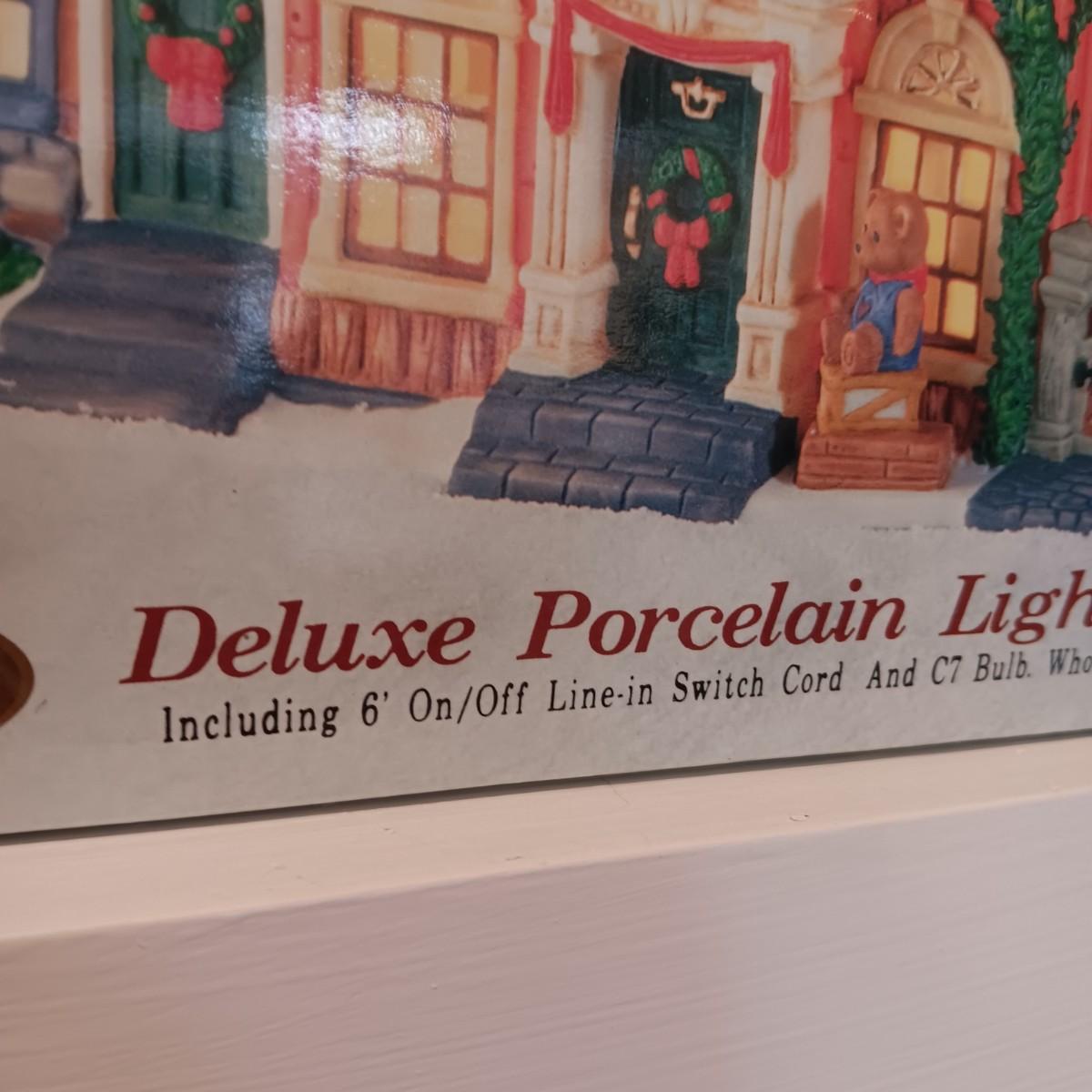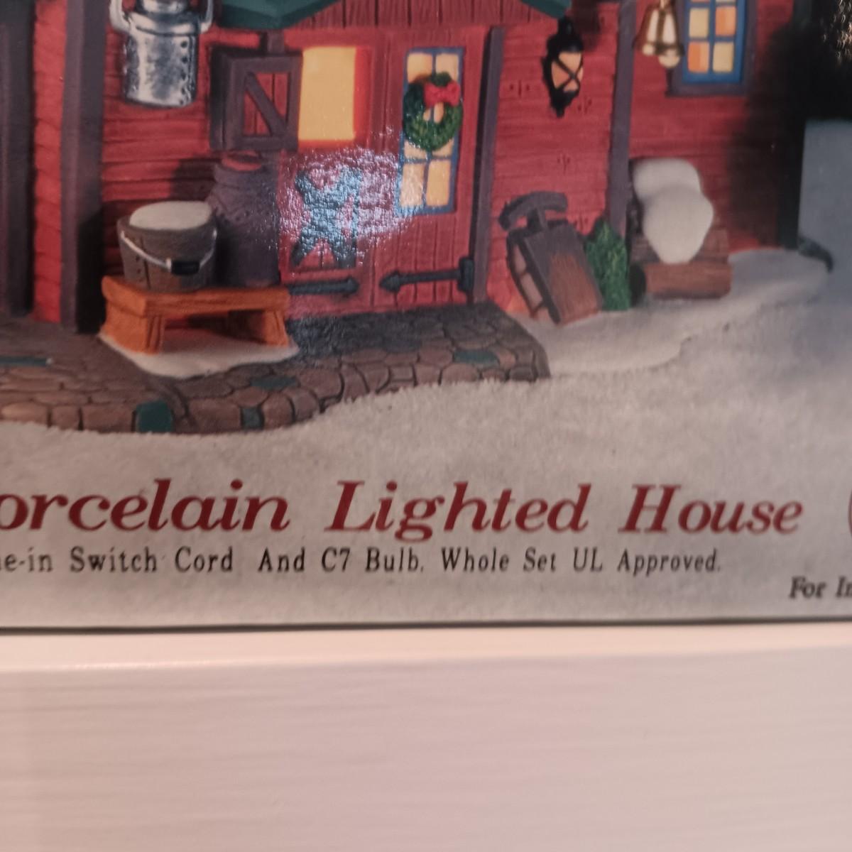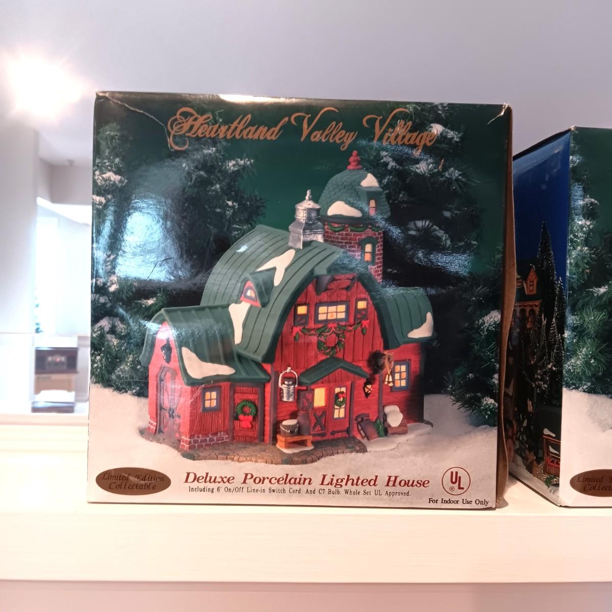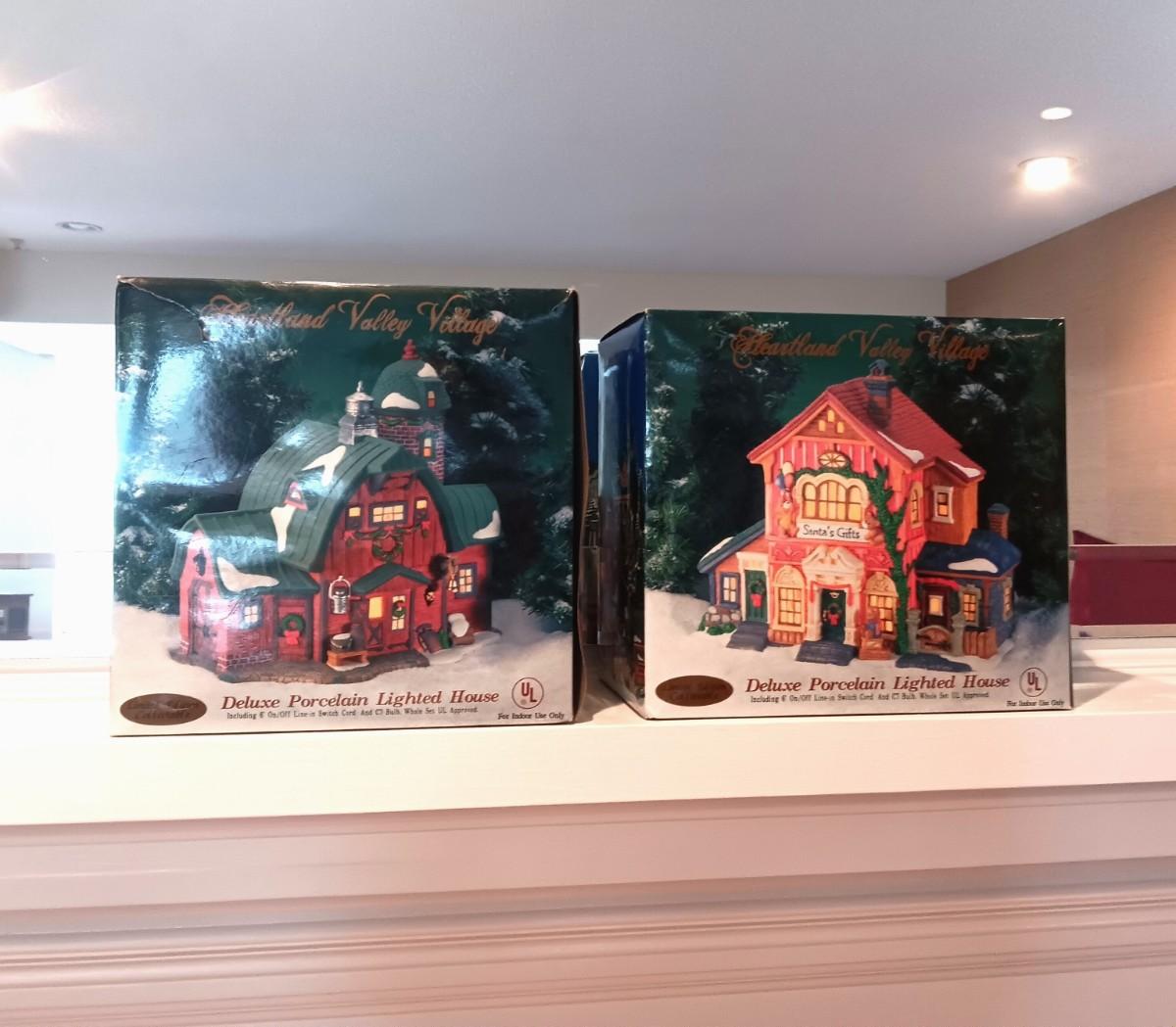 HEARTLAND VALLEY VILLAGE 'SANTA'S GIFTS" AND A BARN LIGHTED HOUSES