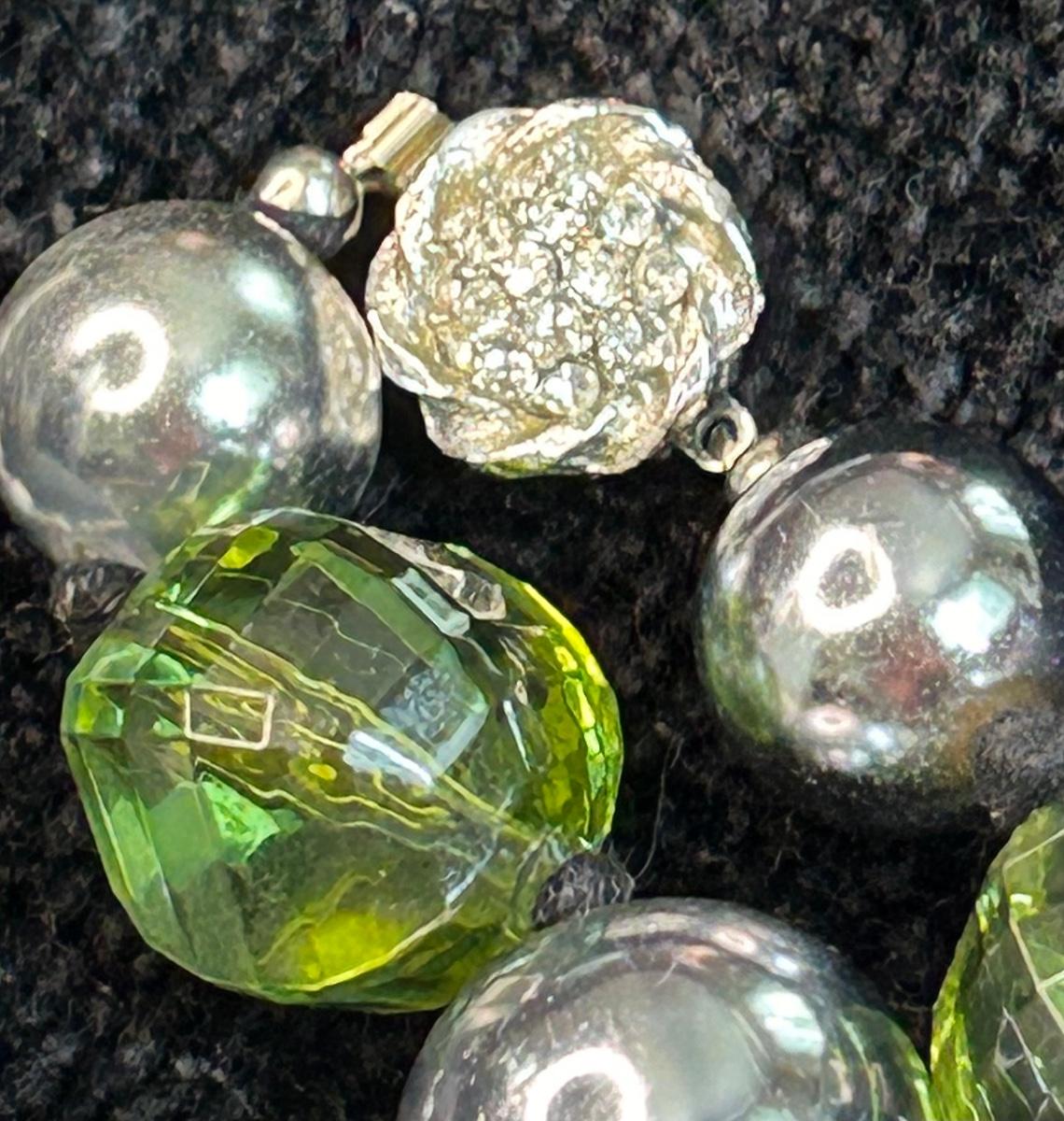The heart necklace is vintage with a hidden barrel clasp, there is some discoloring to the beads. The earrings are glass & pierced.