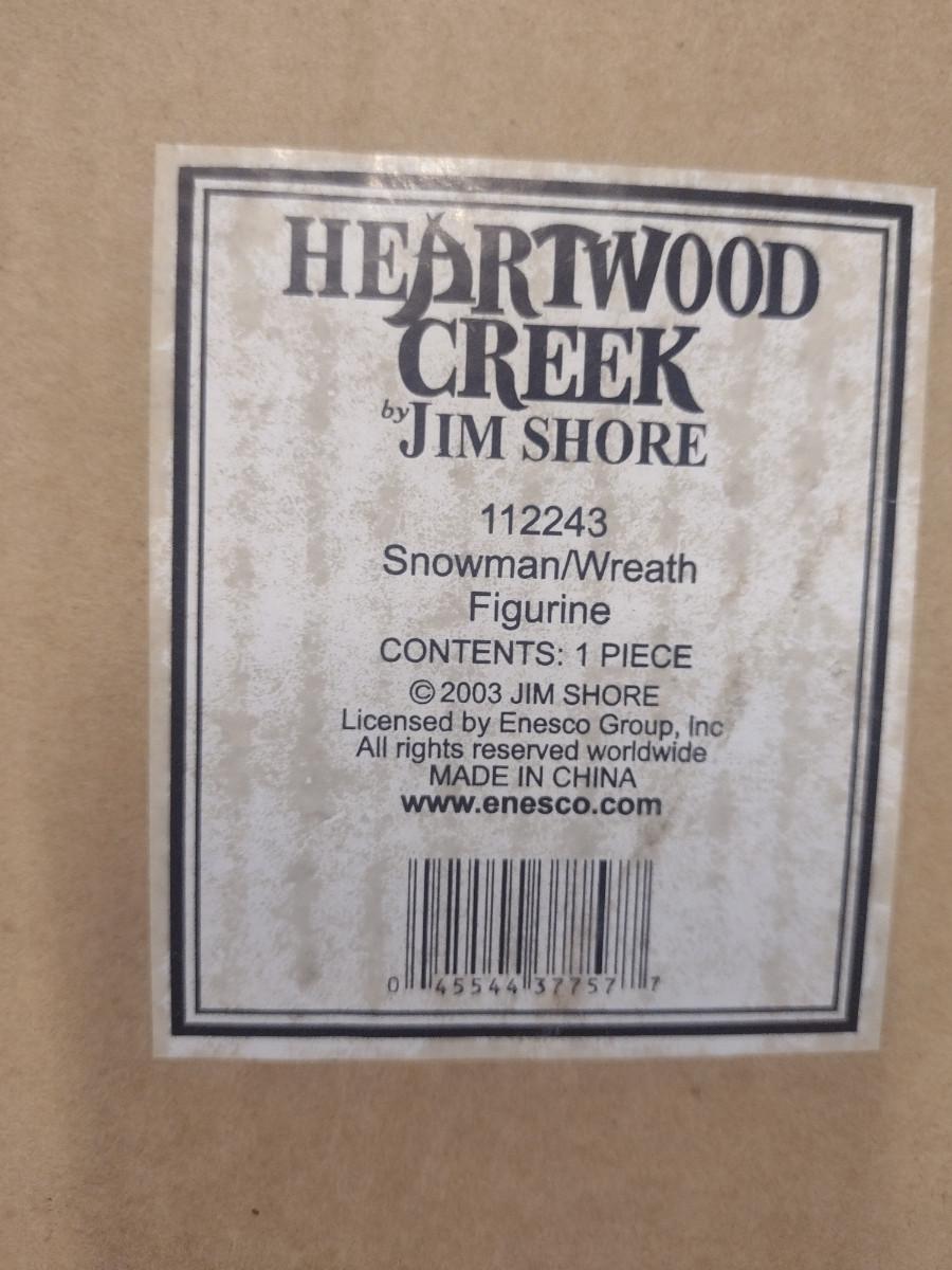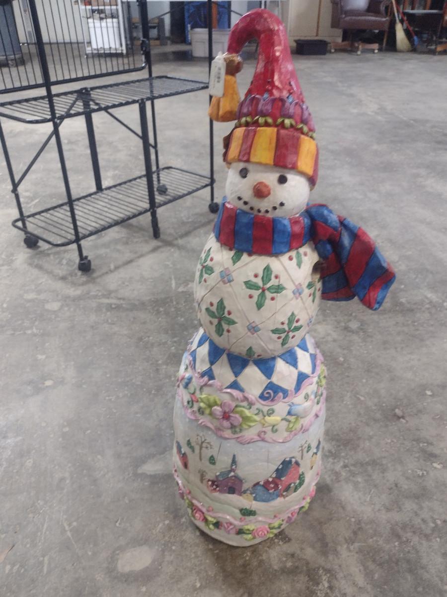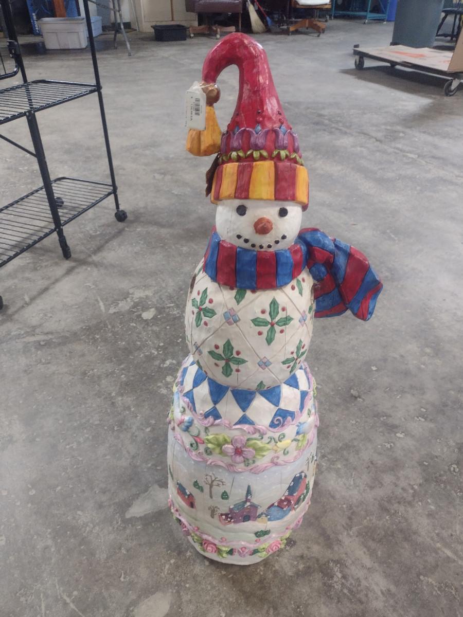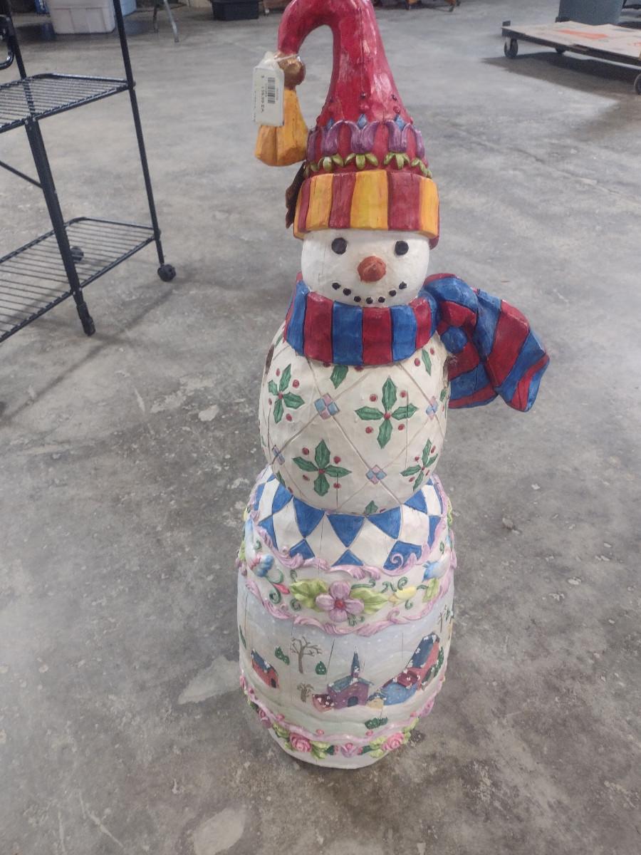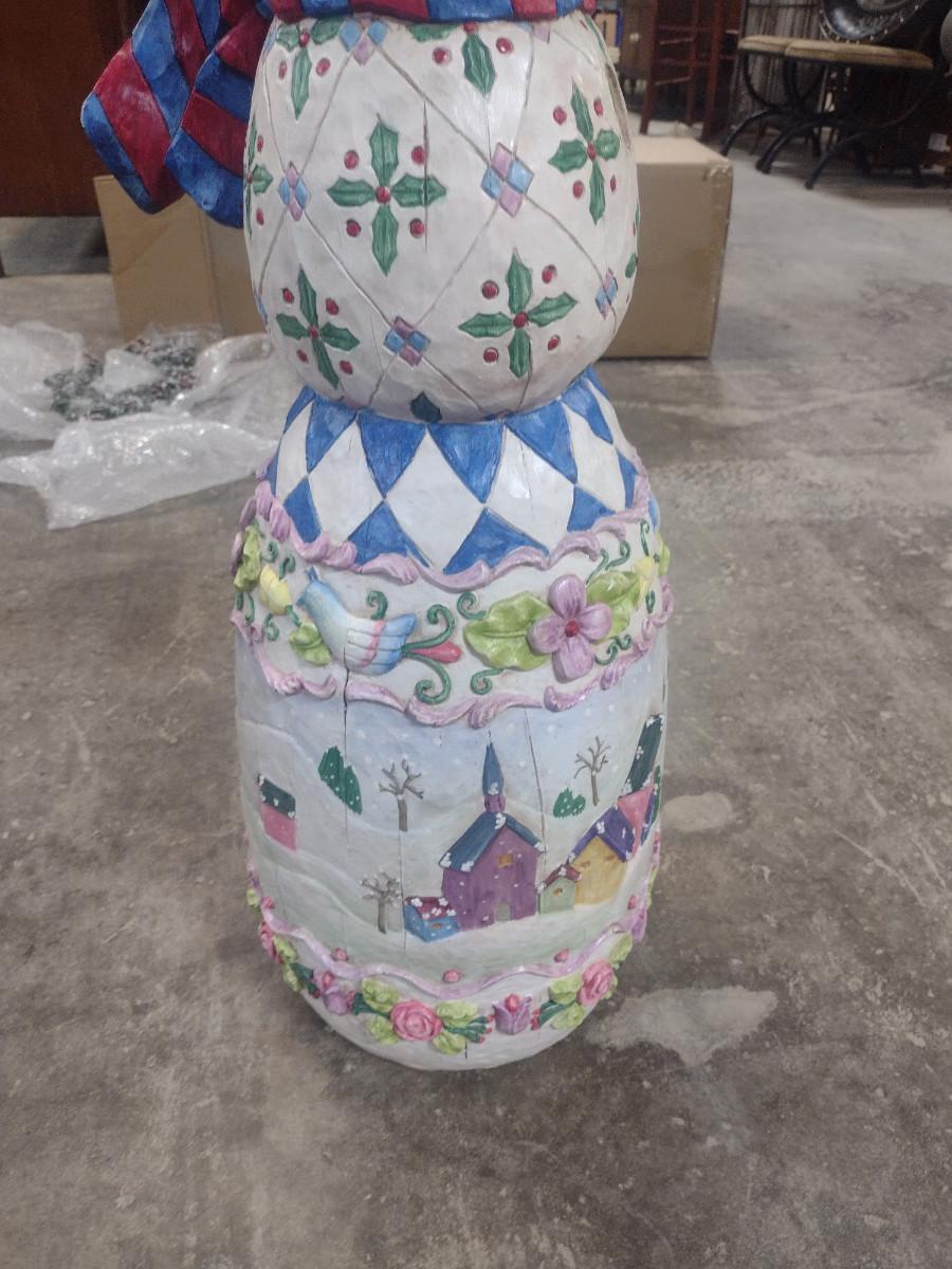 Heartwood Creek Jim Shore Tall Snowman with Wreath Figure- Missing Arms- Approx 34 3/4" Tall. Item is missing both magnetic arms.