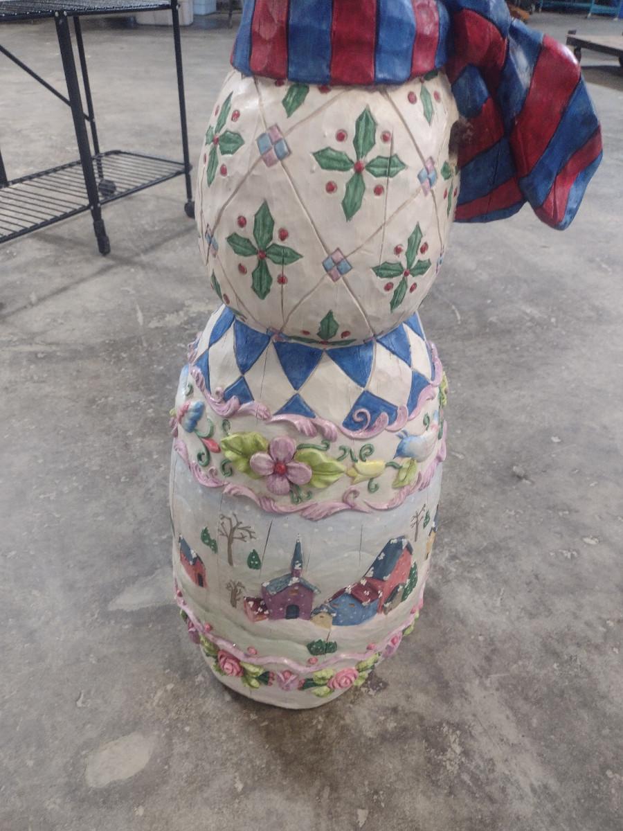 Heartwood Creek Jim Shore Tall Snowman with Wreath Figure- Missing Arms- Approx 34 3/4" Tall
