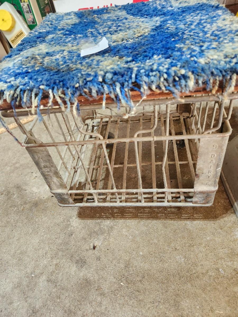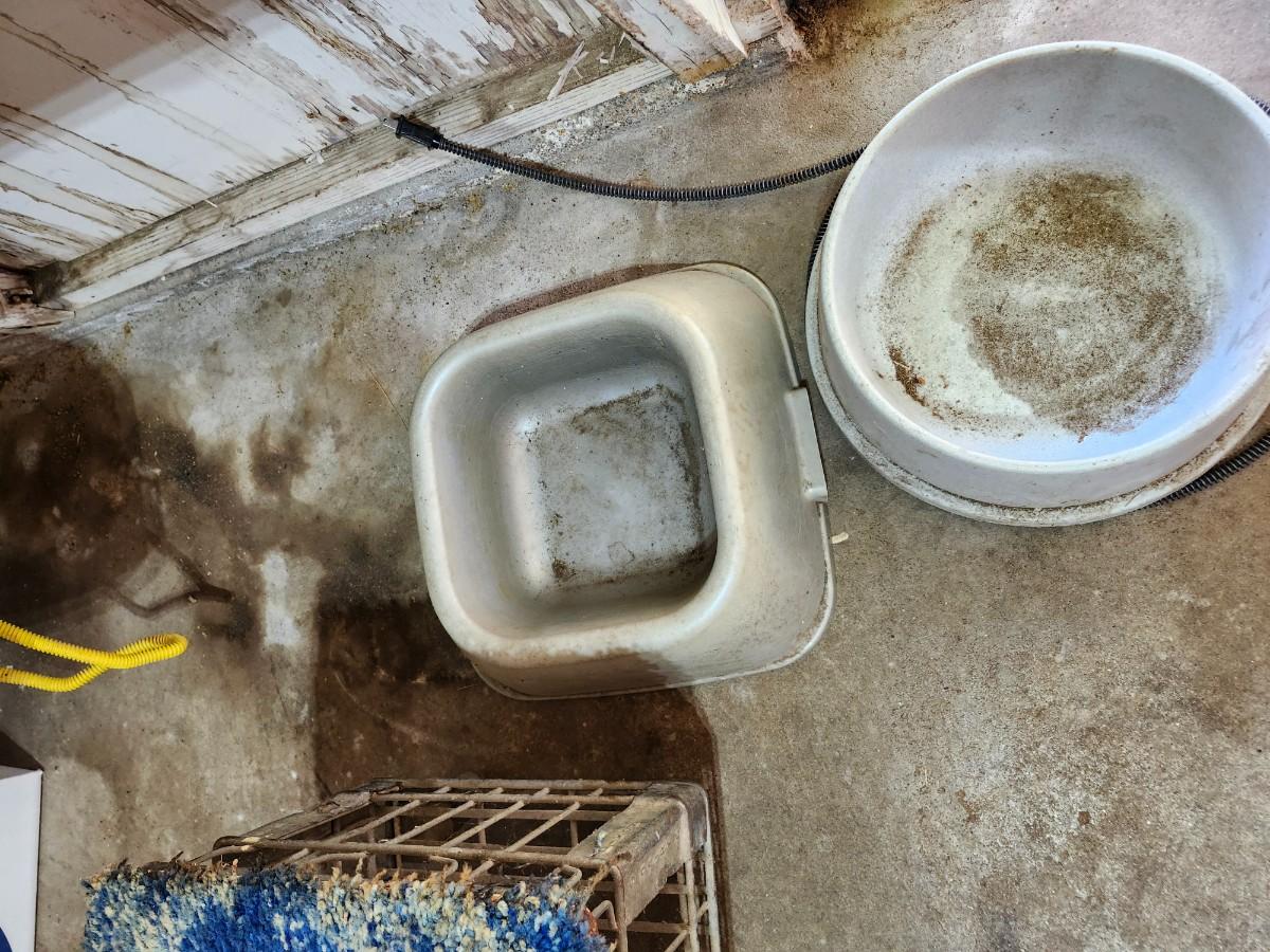 Heated dog water bowl. Wheeled milk stool, water bowl