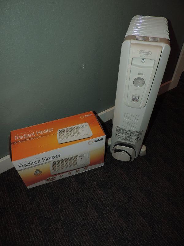 DELONGHI TOWER HEATER MODEL # TRH0715L AND RADIANT HEATER BY SOLEIL