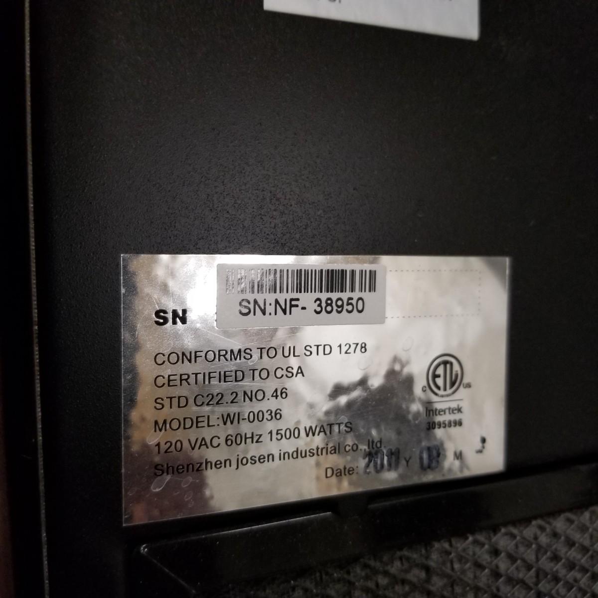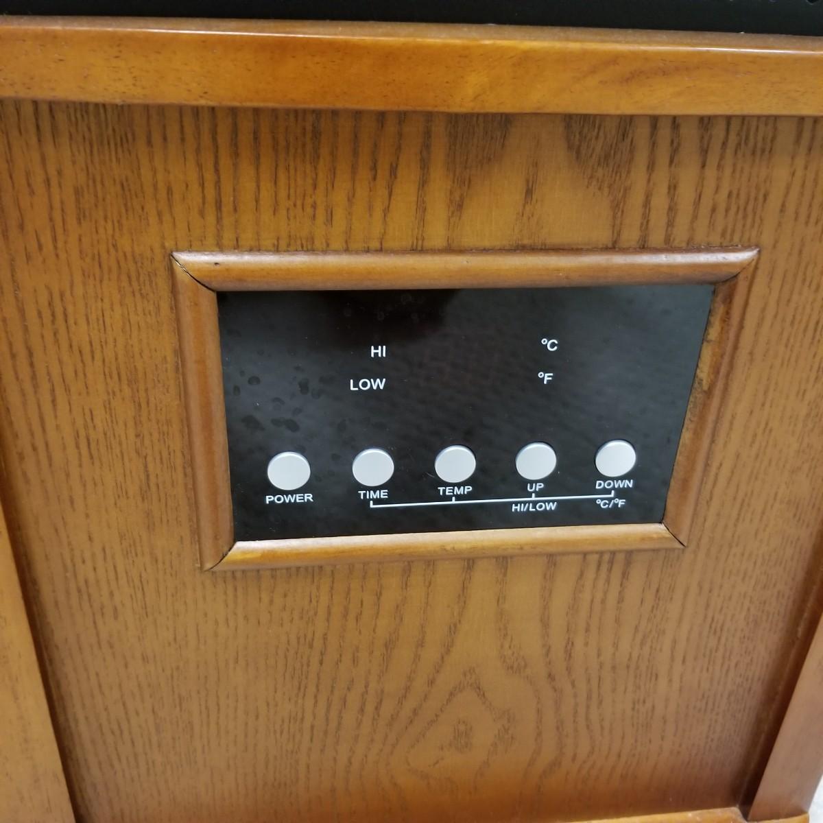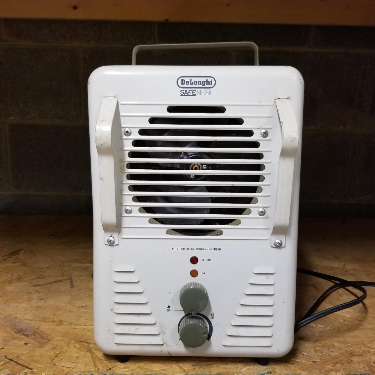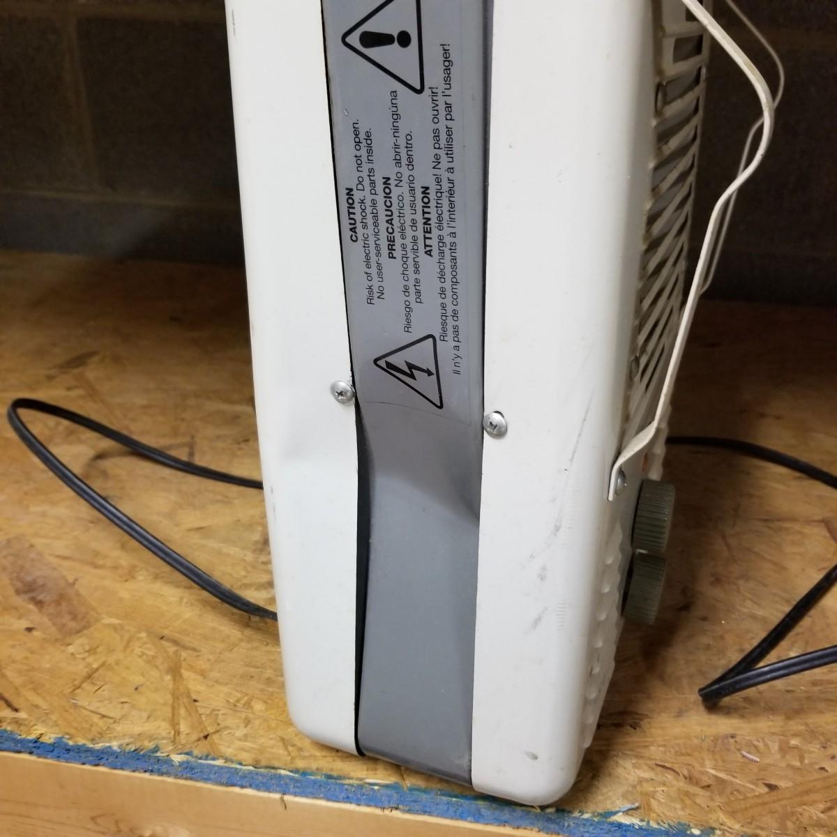 Three portable space heaters and one tower fan. One DeLonghi SafeHeat heater with two heat settings and tip over switch, has a small dent on the side & measures 10" x 7" x 16". One Shenzhen infrared heater with wood case that has digital readout and settings and measures 13" x 15" x 17". One Honeywell surround heat that is 8”D x 11” tall. One Holmes oscillating tower fan with three speeds and timer function, that measures 11" x 32". All items powered on when tested. See photos for details. Local pickup only.