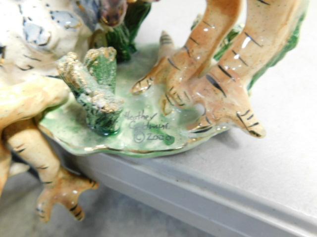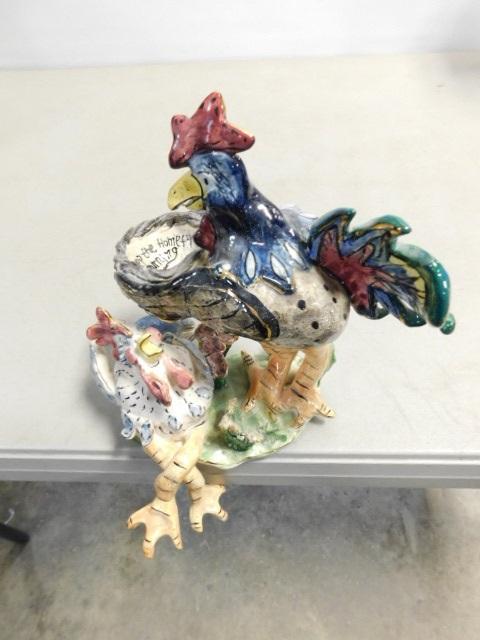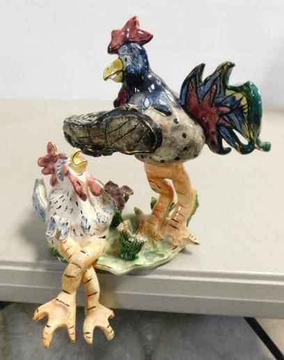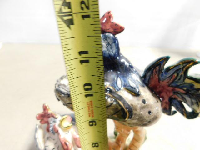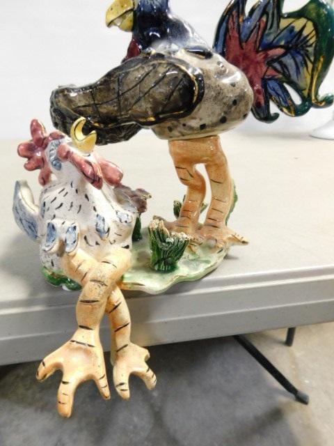 Heather Goldminc Porcelain Art Rooster and Chicken Blue Sky Studio Signed