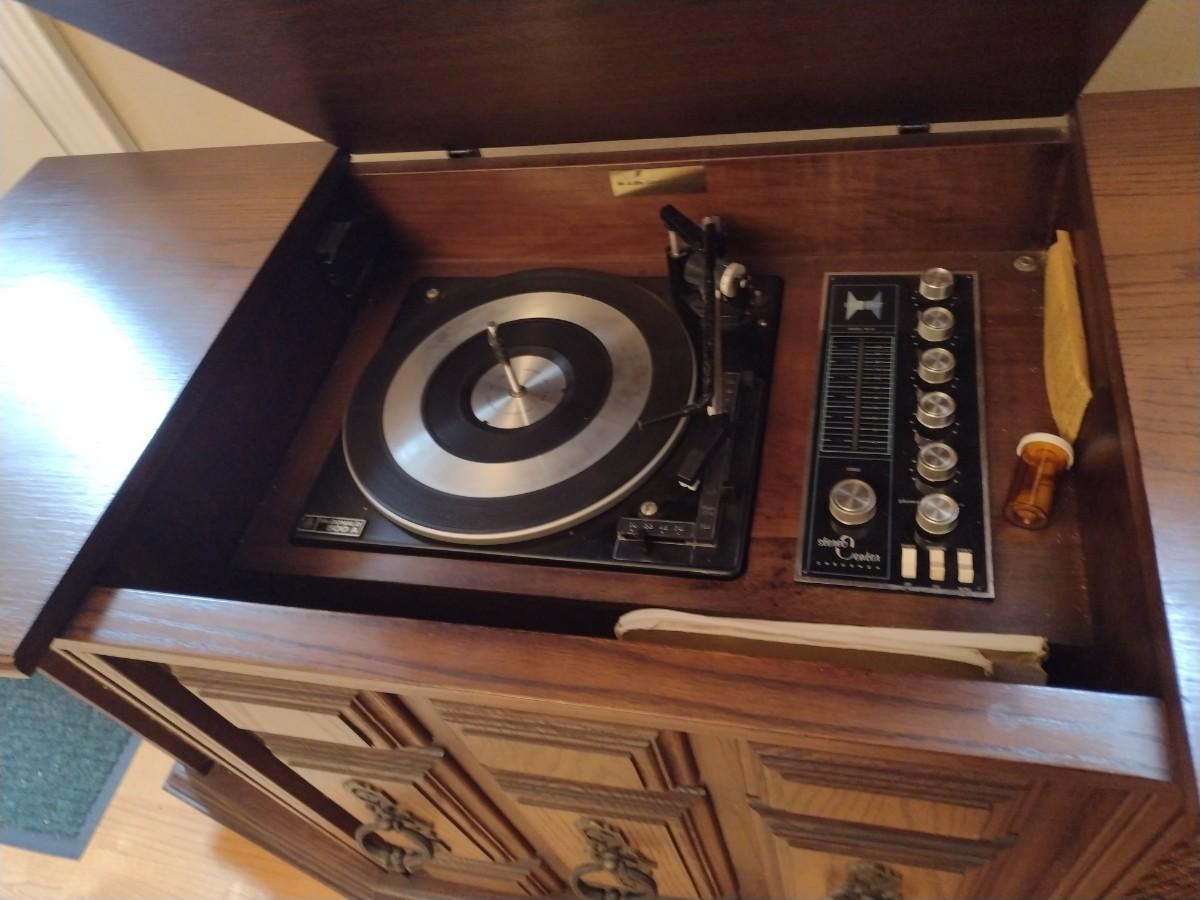 Vintage Heathkit McDonald 500A Stereo Console one speaker has a short. FM appears to work along with turntable.