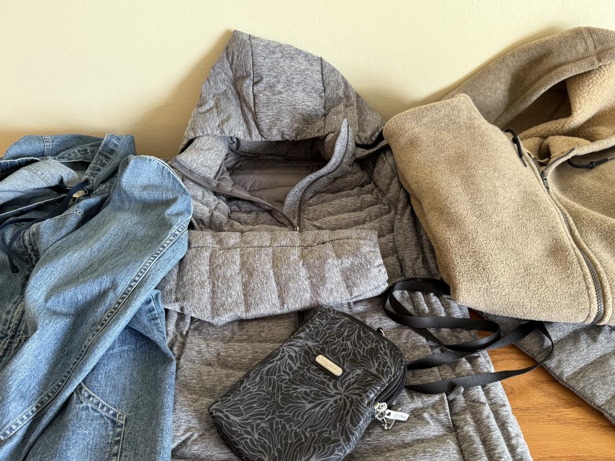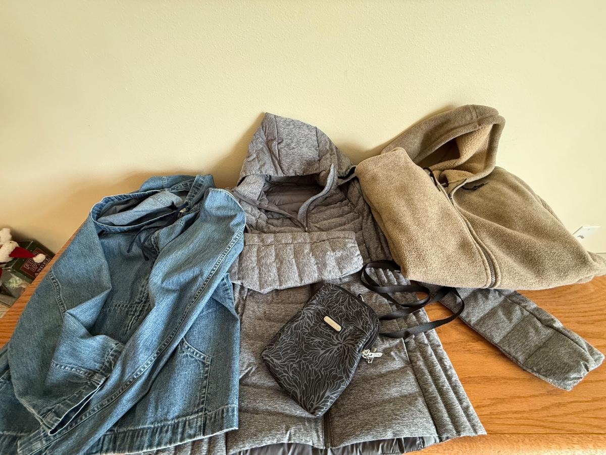 Heatkeep & 2 Eddie Bauer Medium coats, w/Baggallini cross body purse
