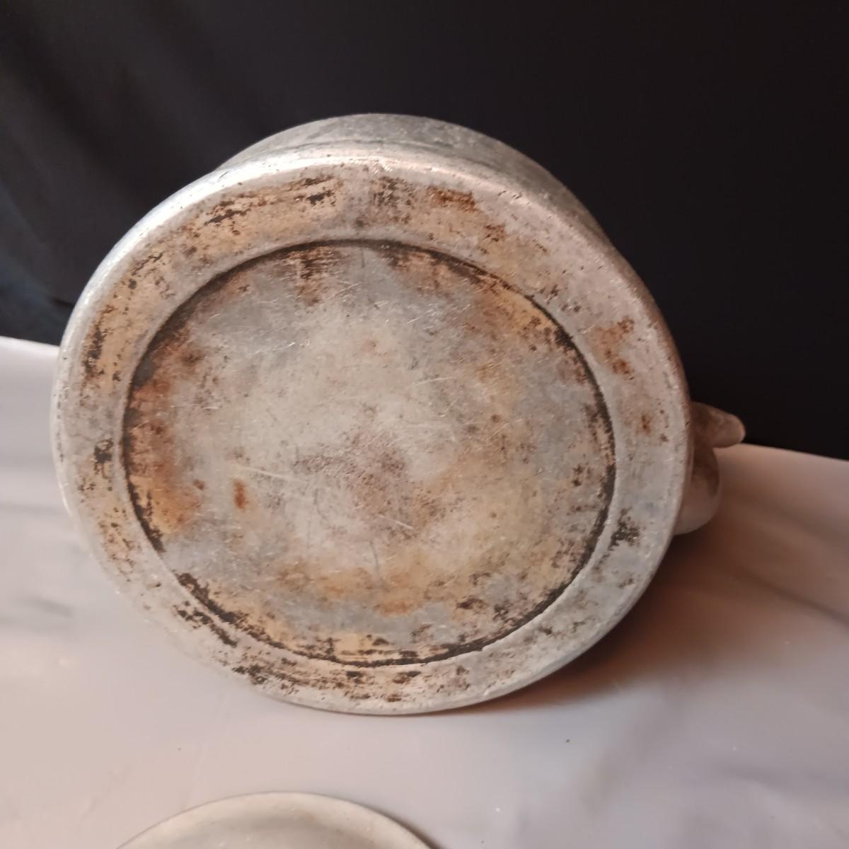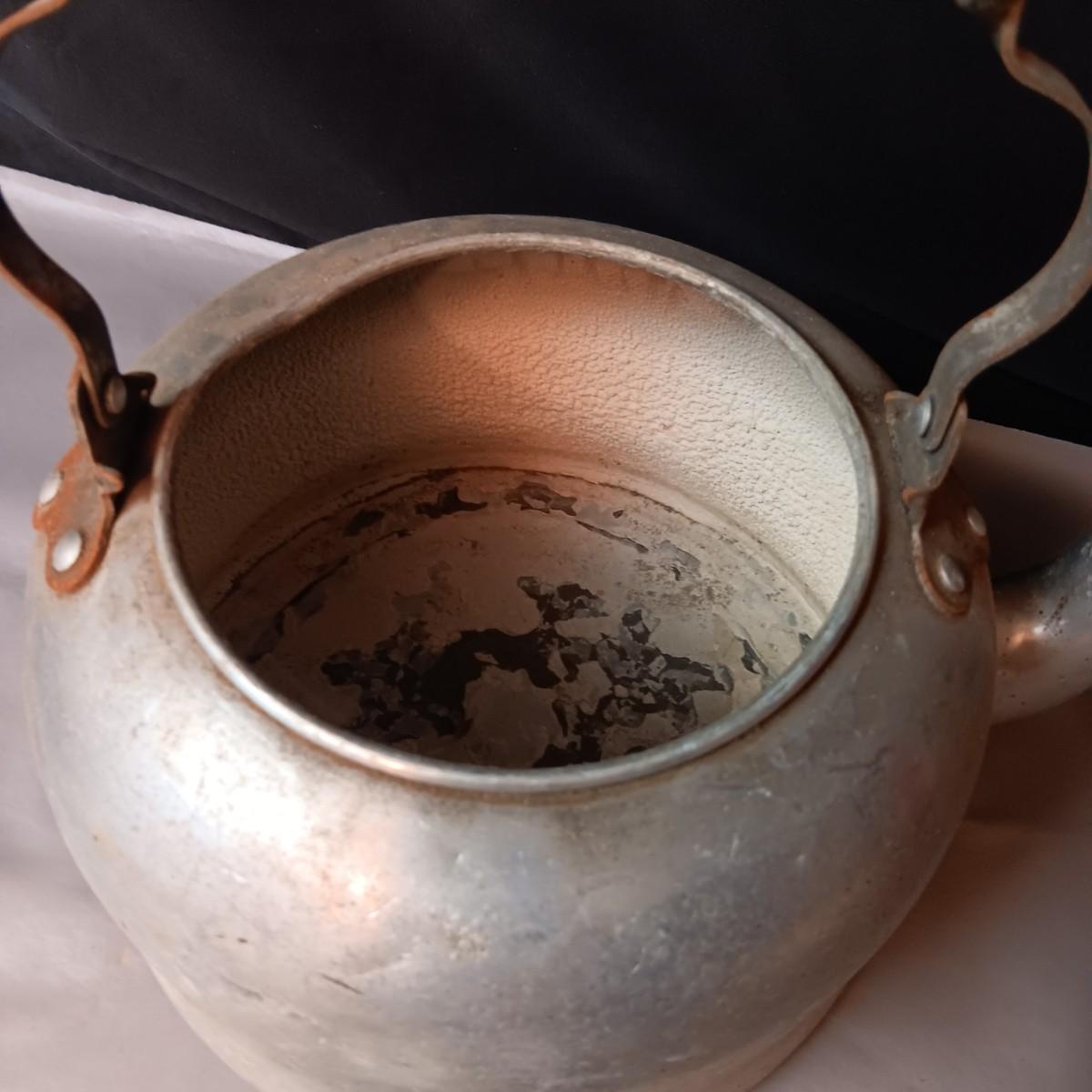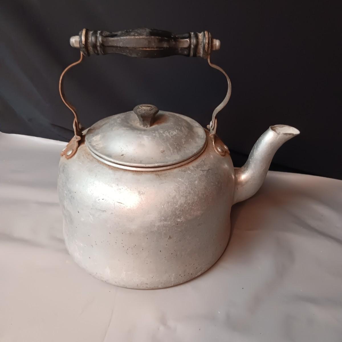 HEAVY ALUMINUM MIRRO KETTLE AND CAST IRON TRIVET