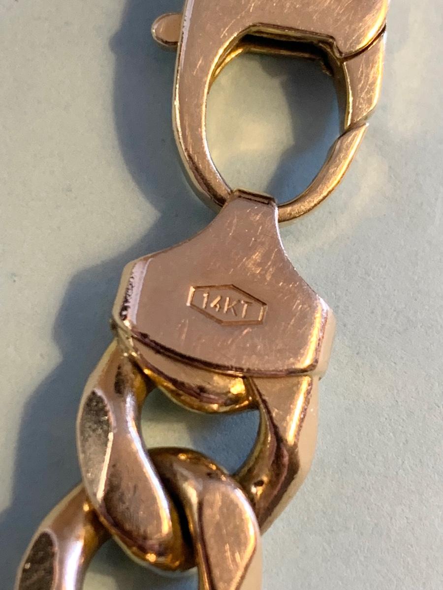 Fantastic late add to the auction. Marked both 14k in several places as well as 585 on large, sturdy lobster clasp.