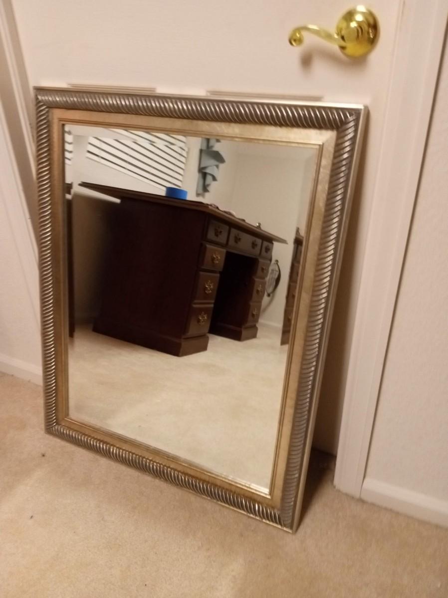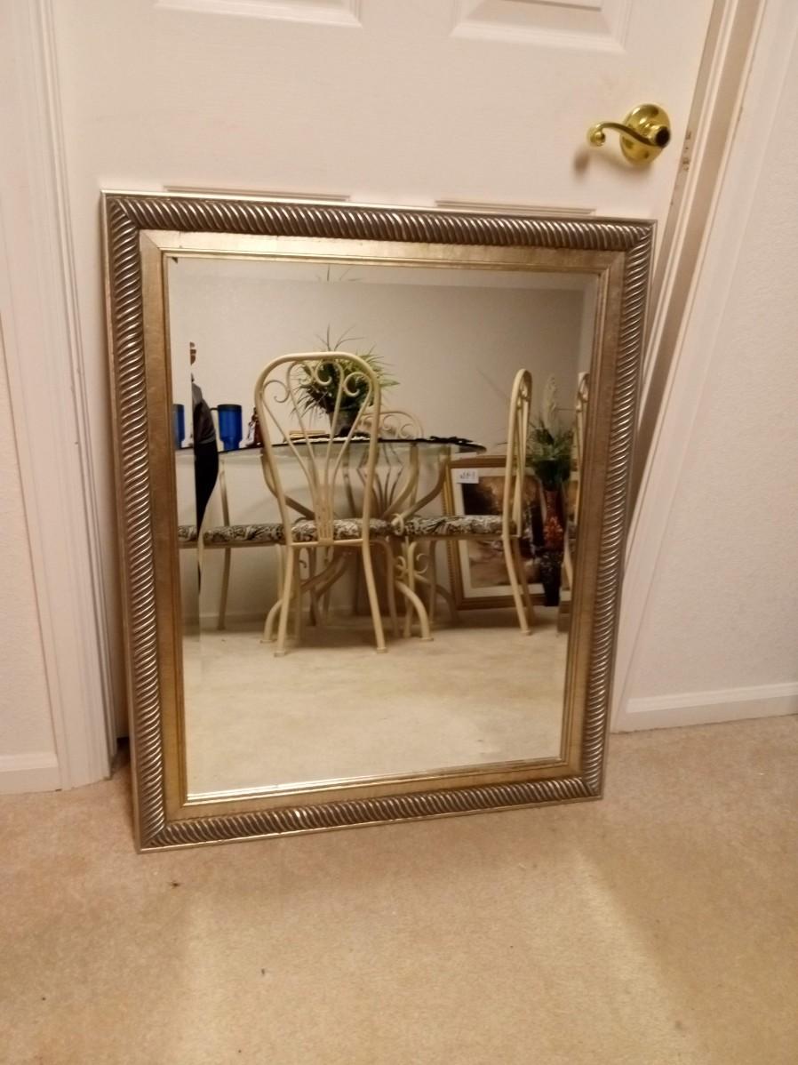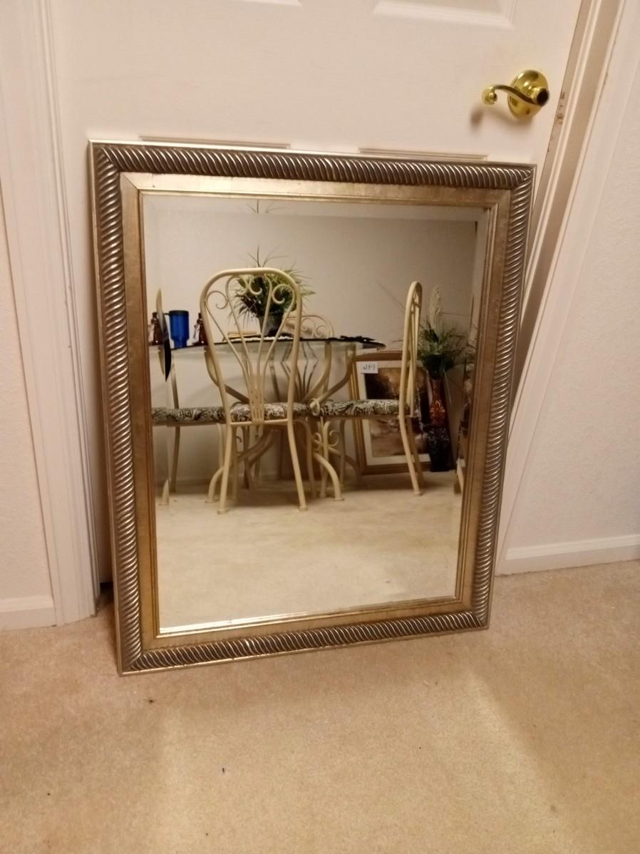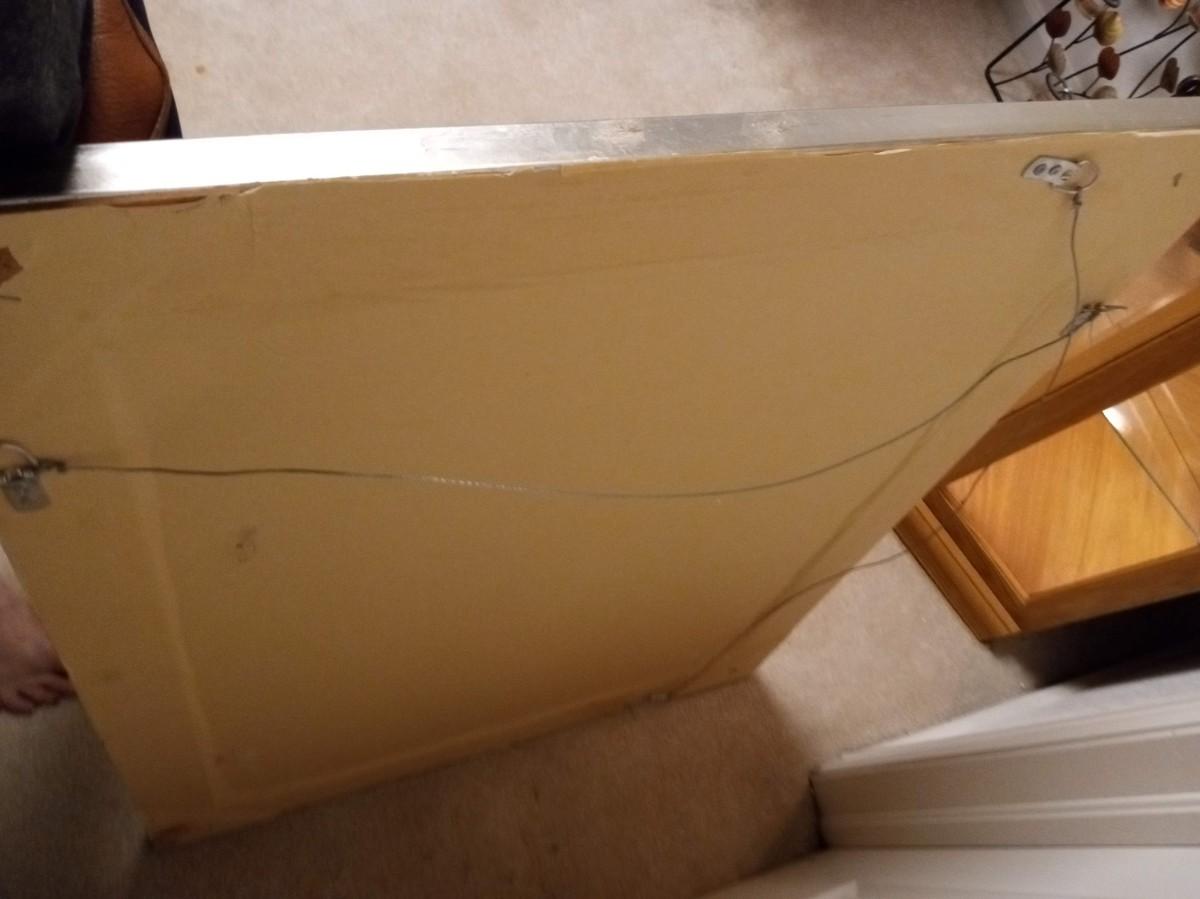 27" X 33". IT IS WIRED TO HANG EITHER WAY