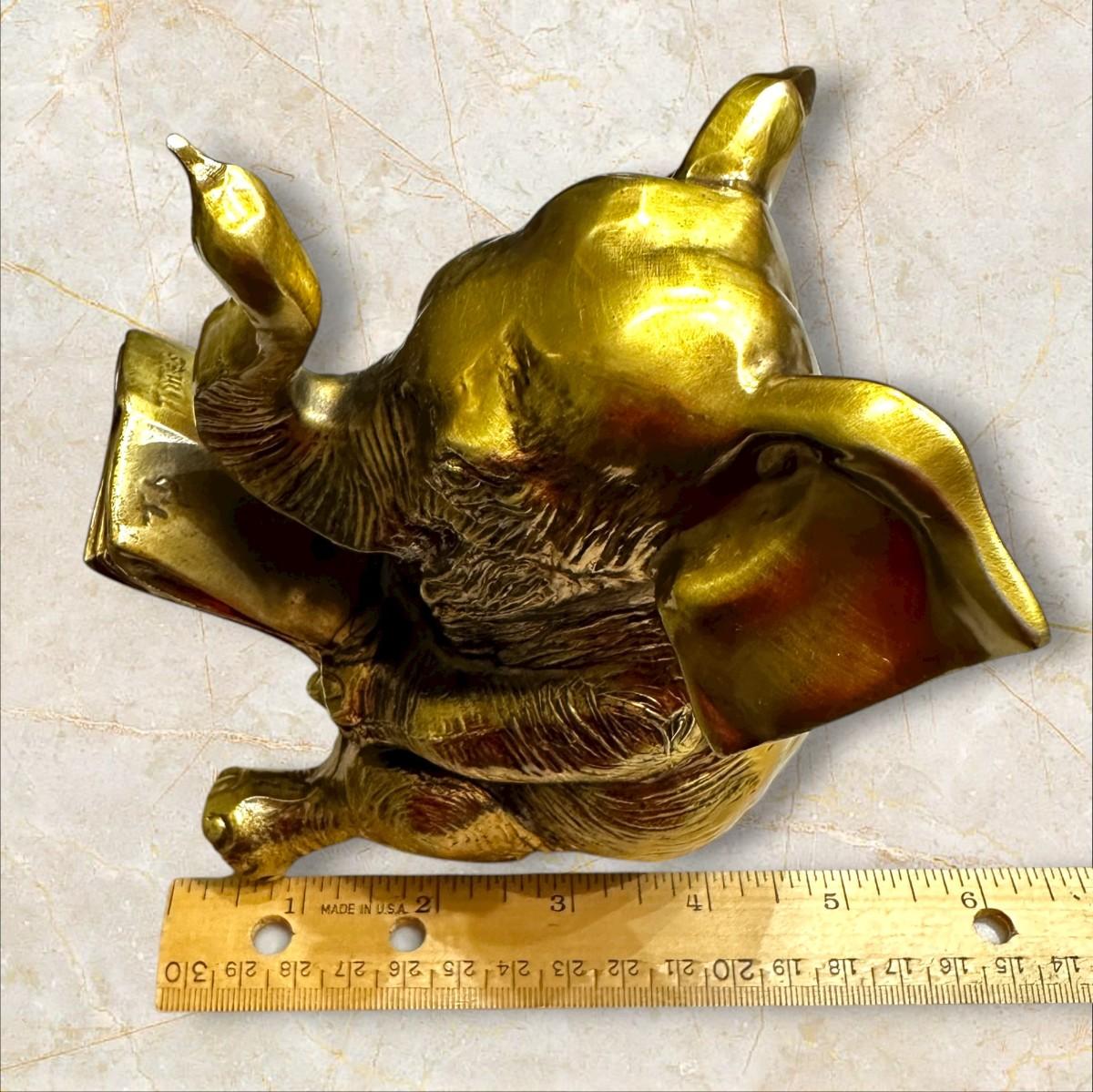 Heavy Brass Elephant Reading Newspaper Decor Approx. 5' tall x 6" wide
