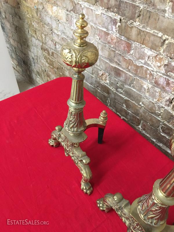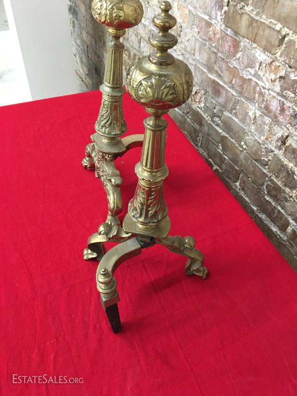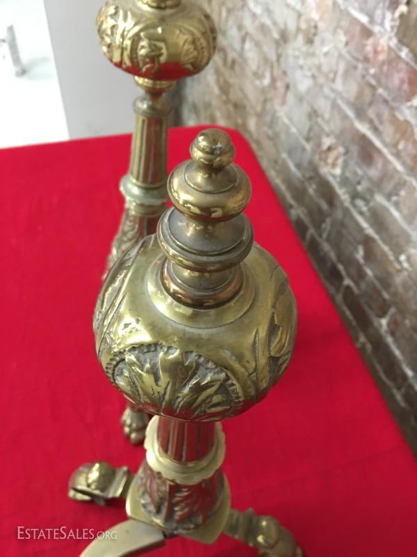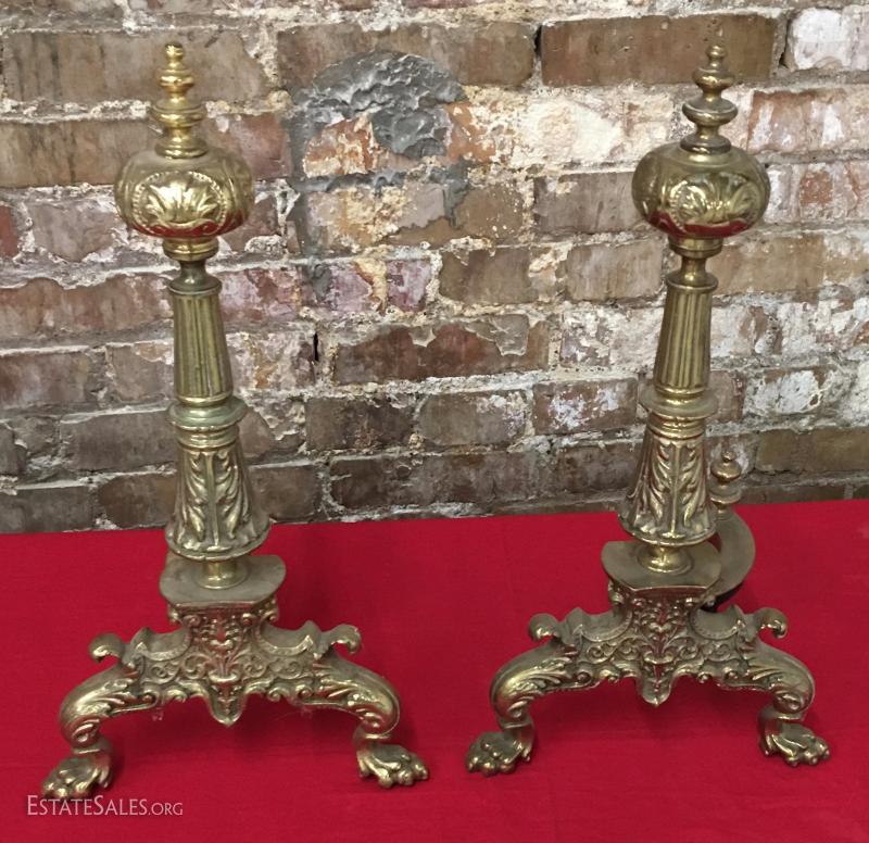 Heavy Brass Fireplace Andirons Hollywood Regency...