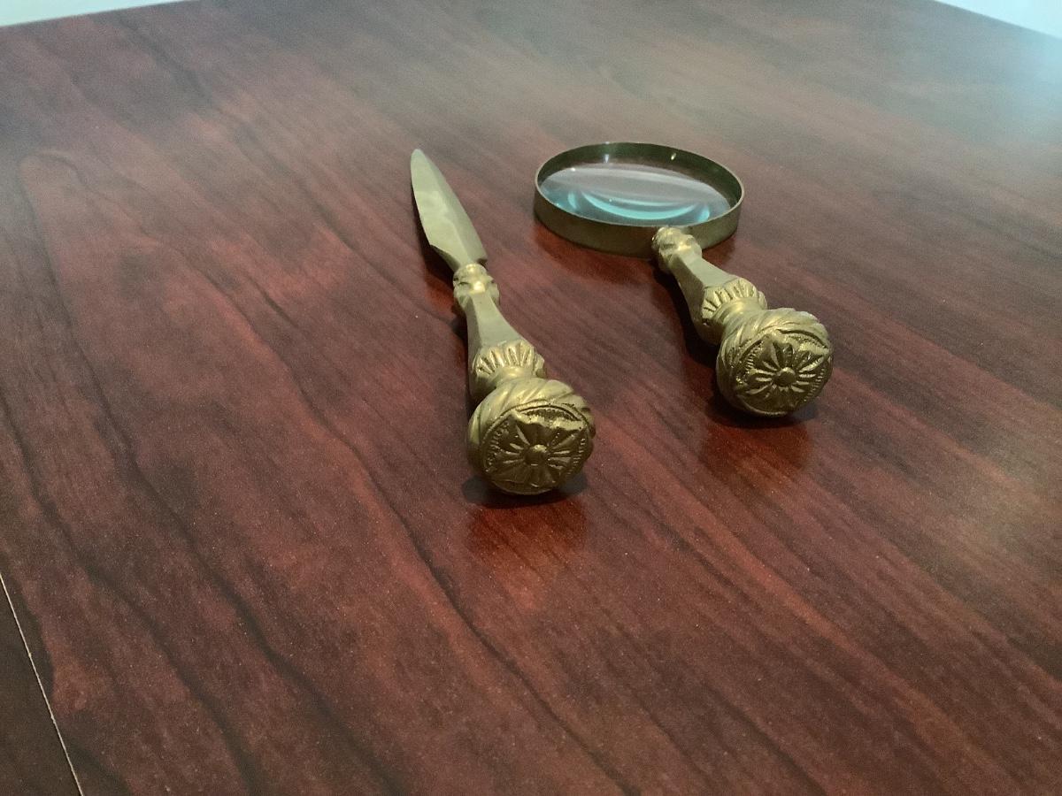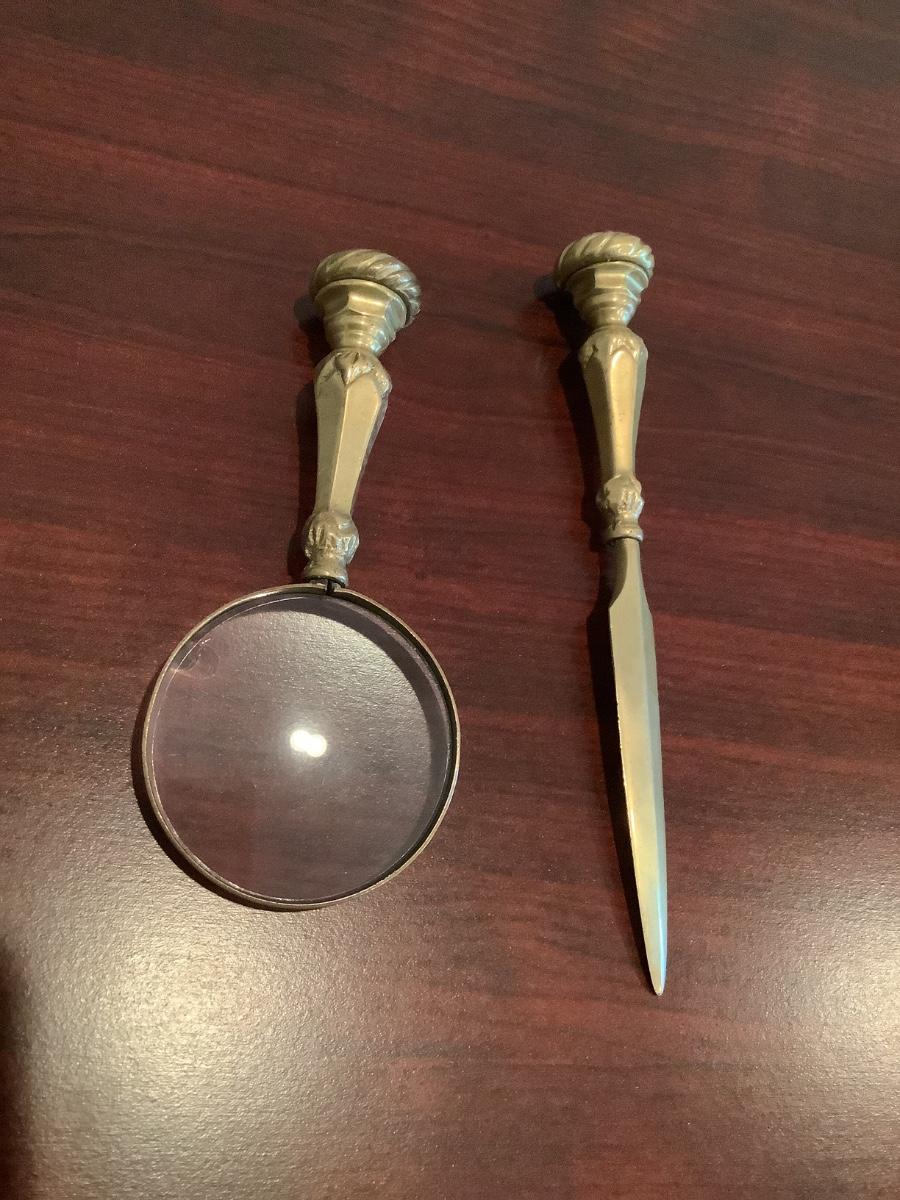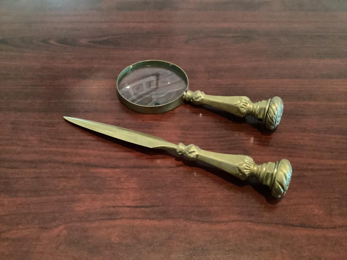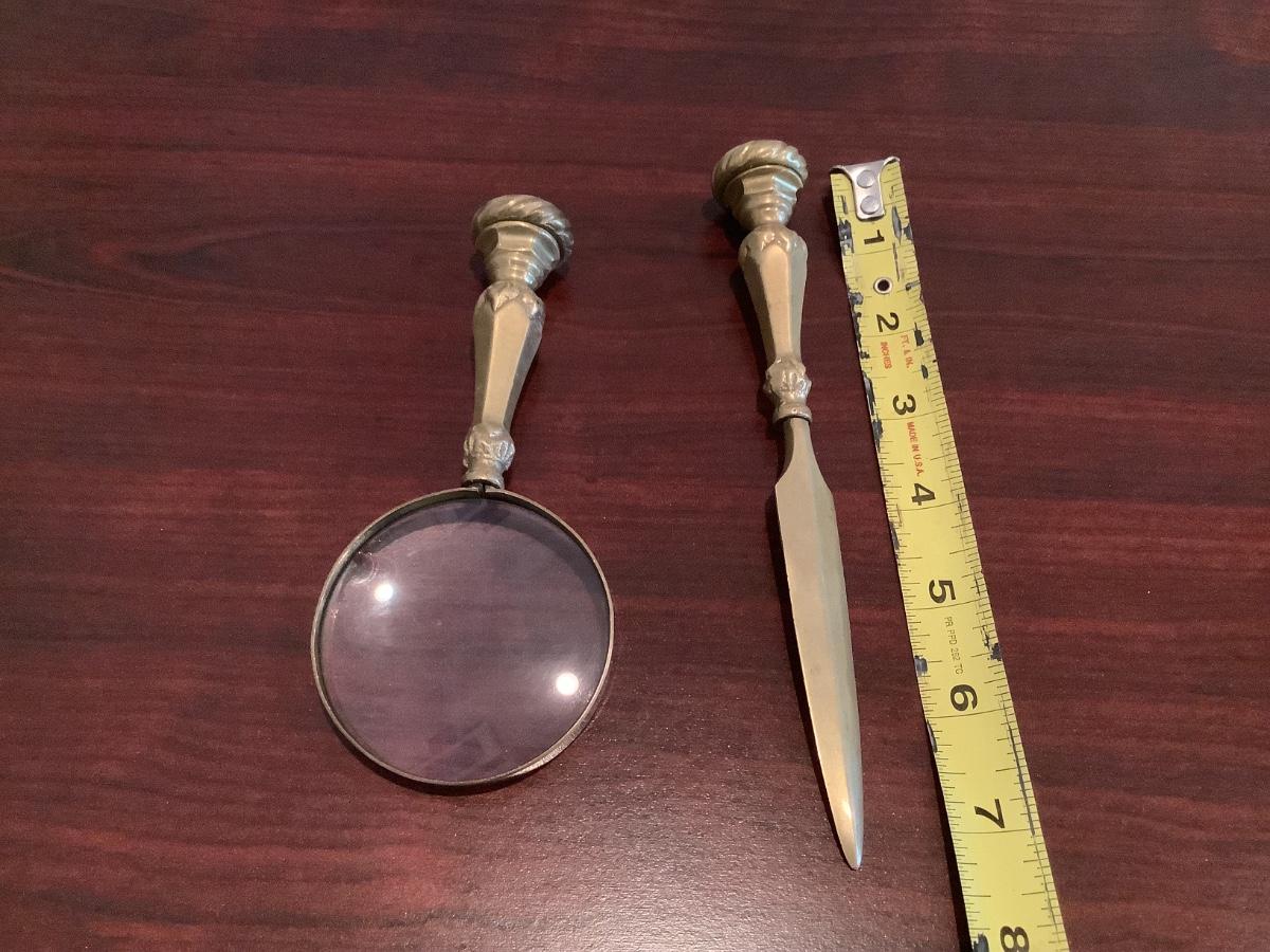 Heavy brass letter opener and magnifying glass