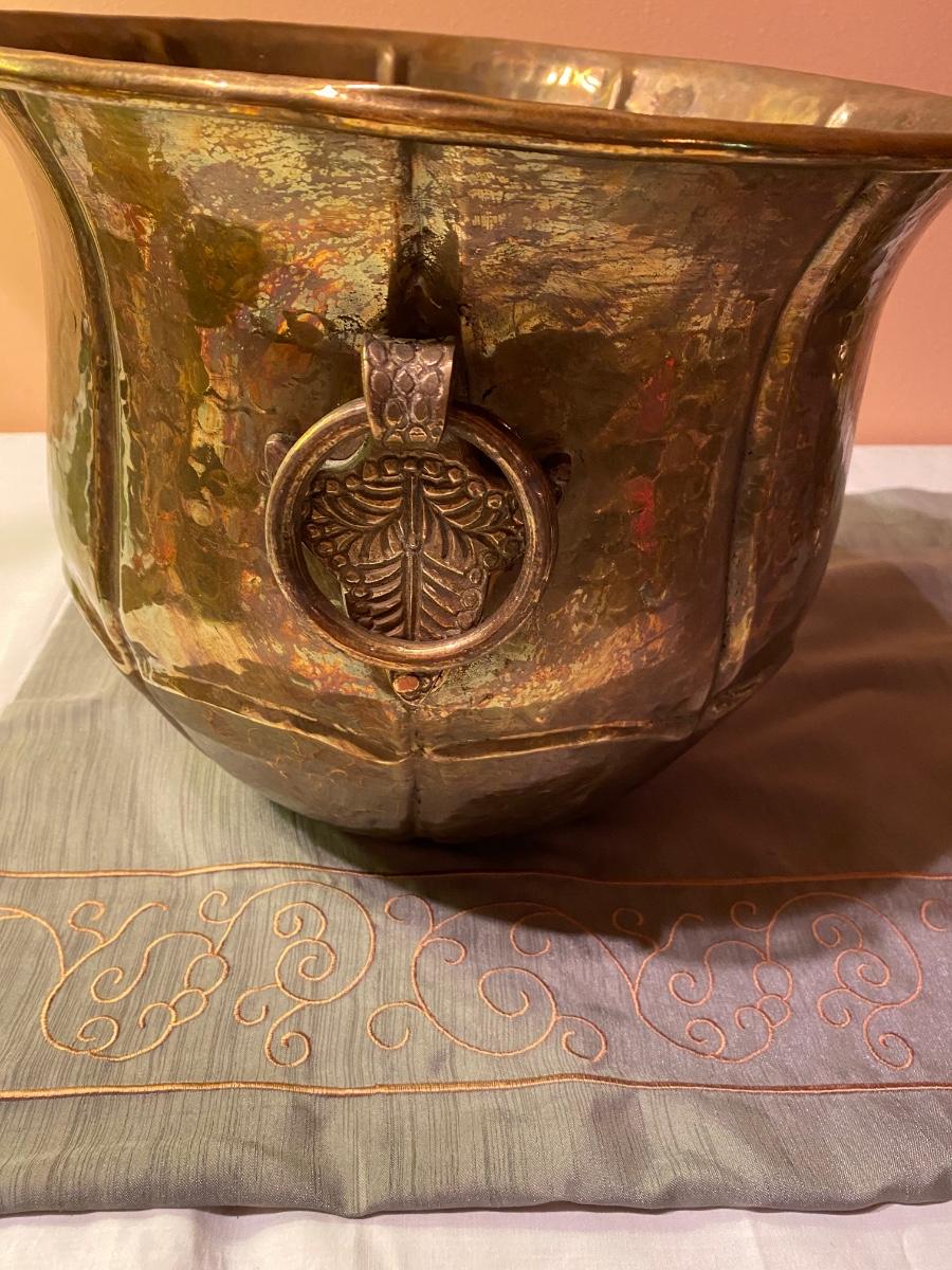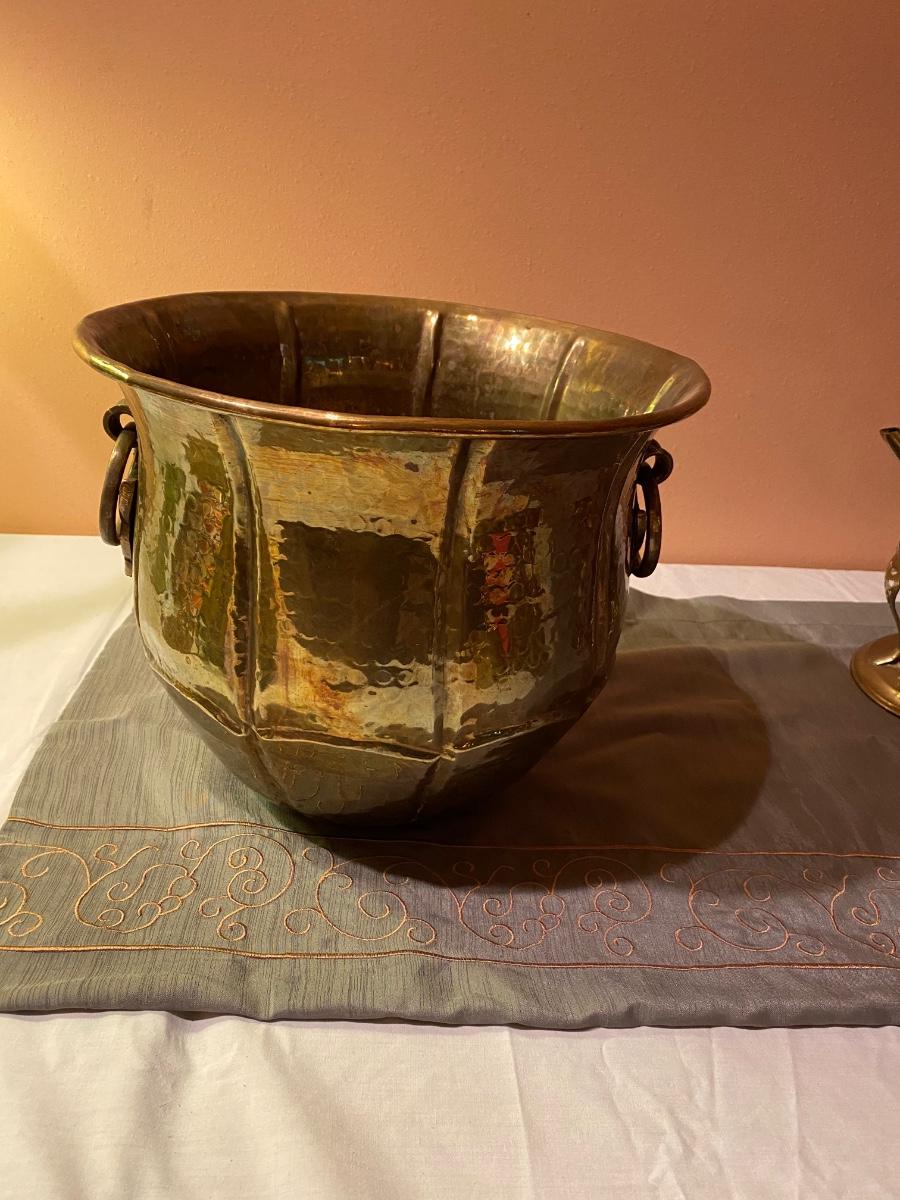 Heavy brass planter with handles. Approx 12-1/2 x 10-1/2. Good condition