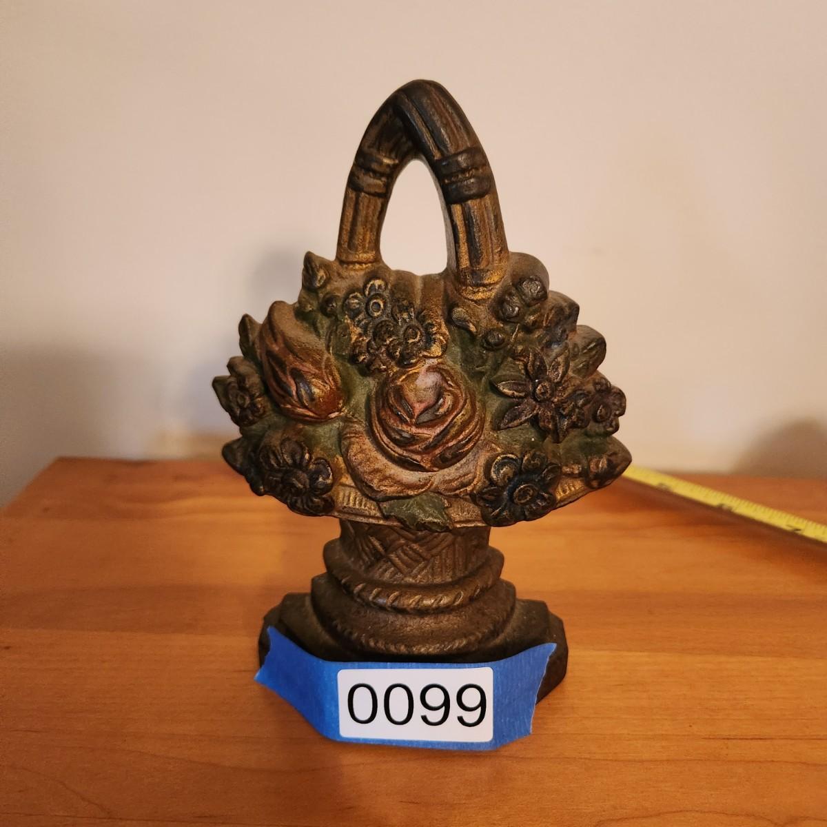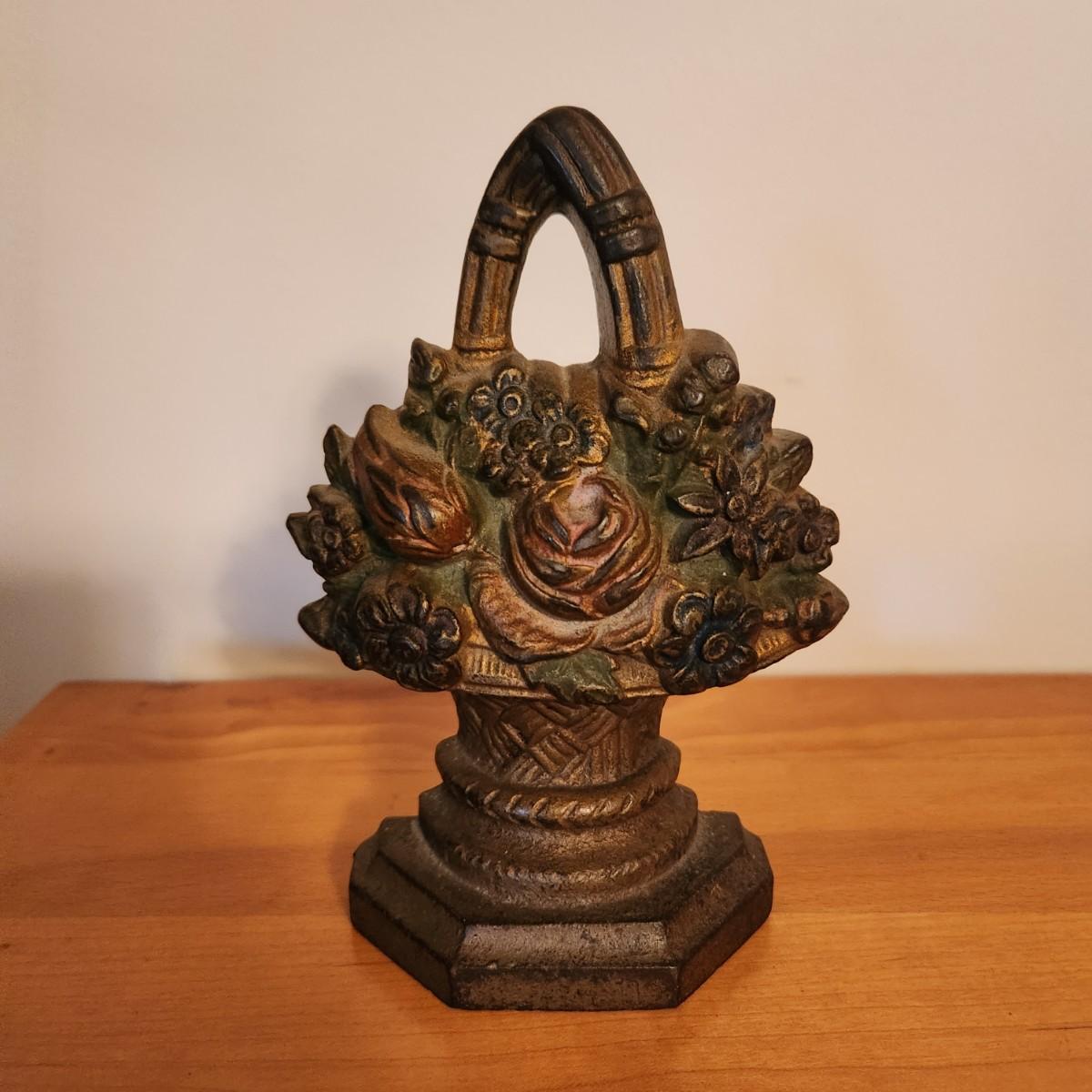 Heavy Cast Iron Bouquet Basket Door Stop Bookend