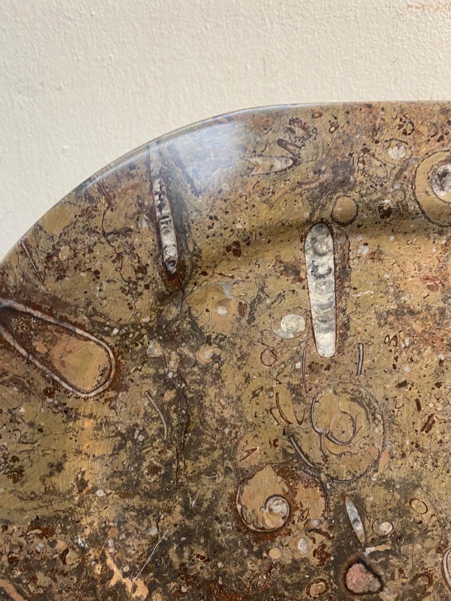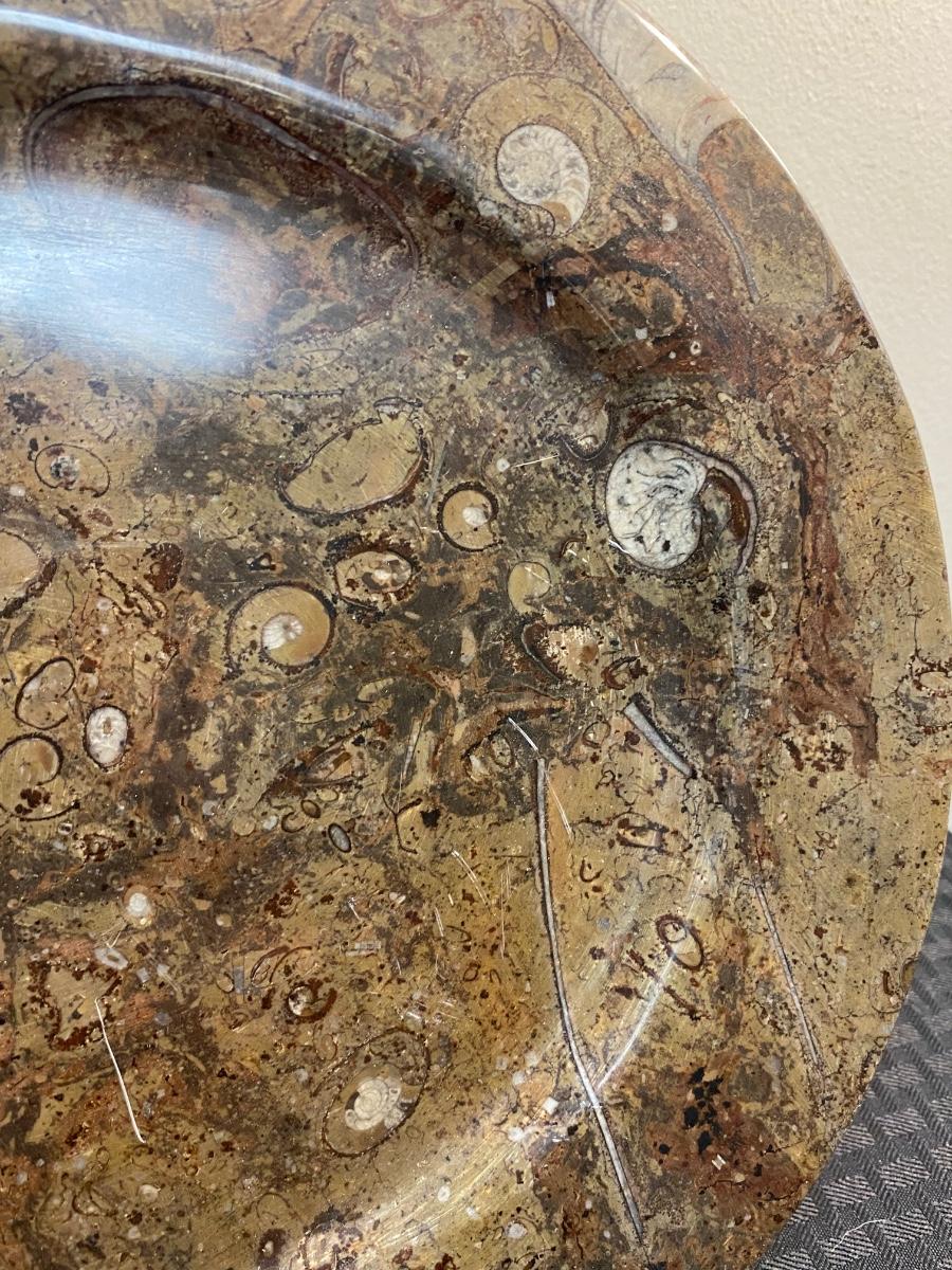 Heavy Centerpiece Polished Stone Fossil Matrix Platter Tray Dinnerware, there are no significant chips or cracks to the [latter and is in good useable condition. Check pictures for more details and for sizing.