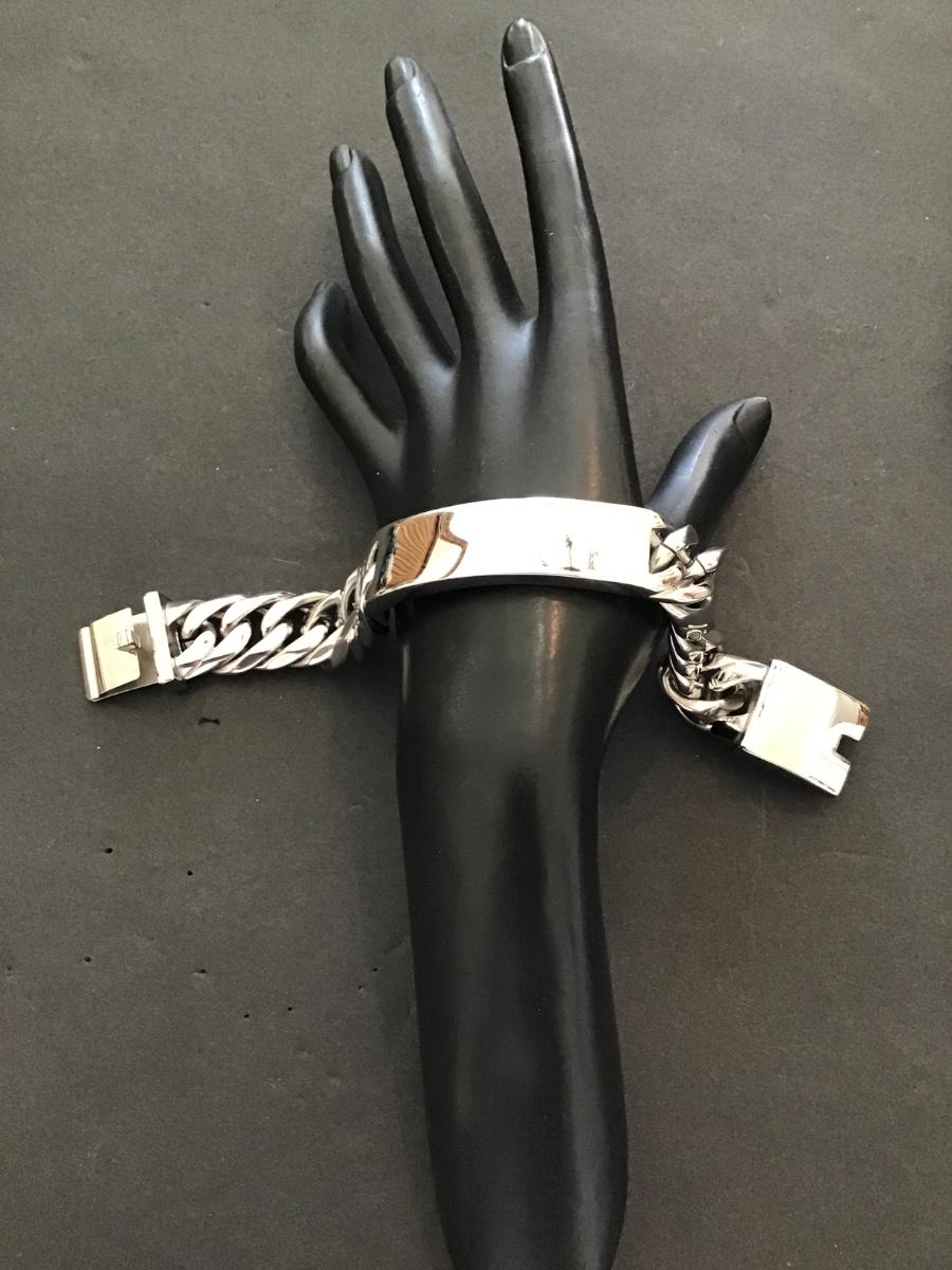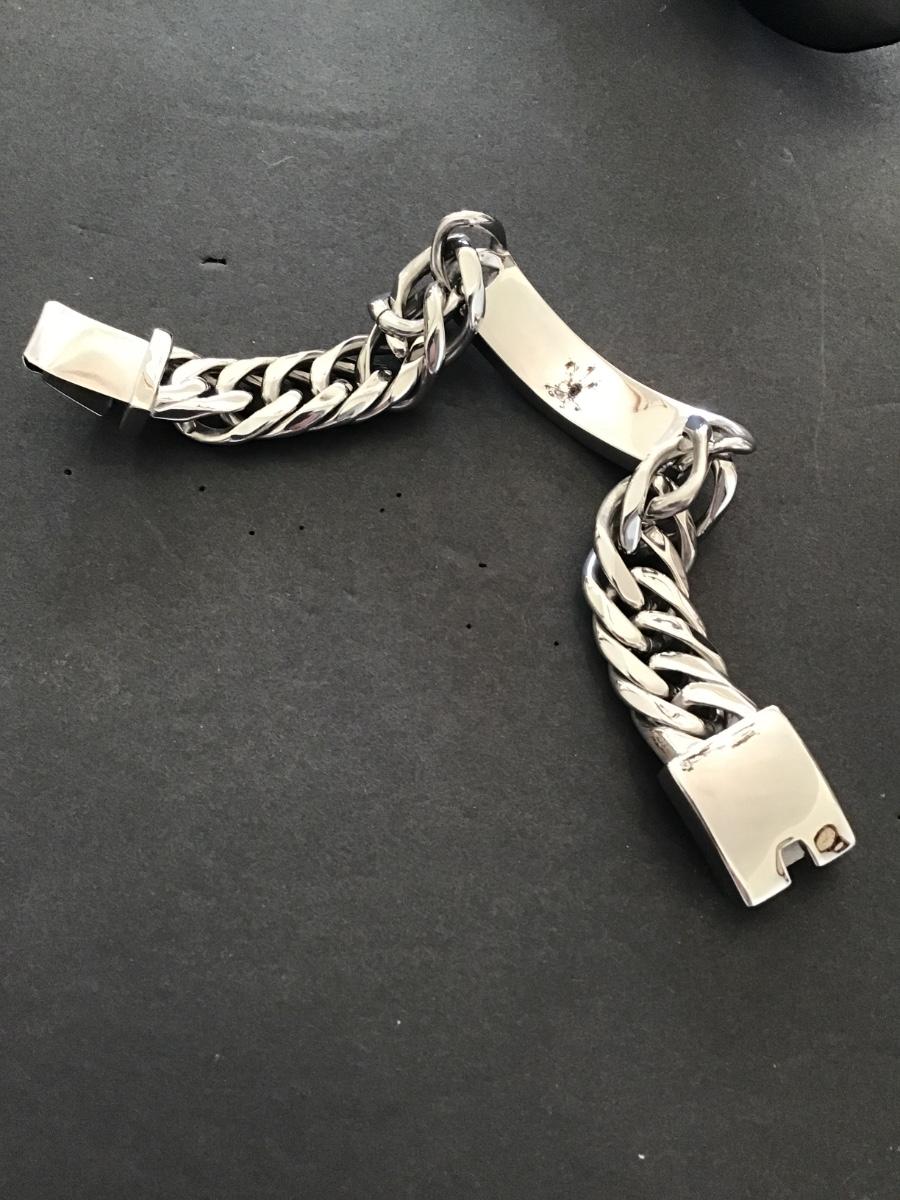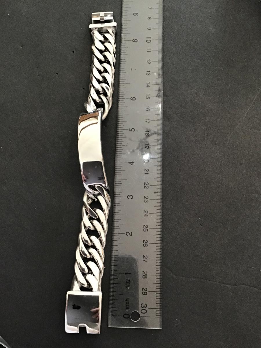 Heavy, chunky silver tone bracelet. Please see attached photos.
