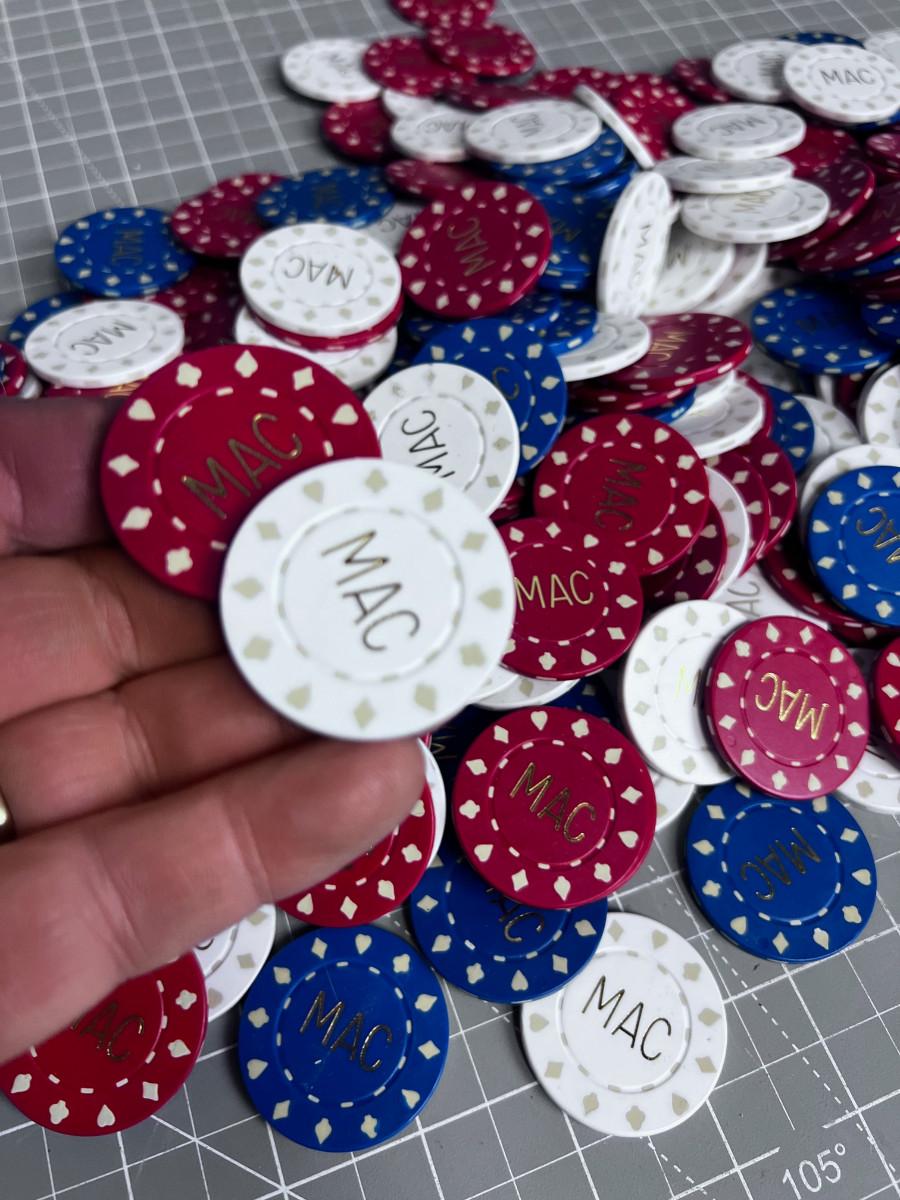 Heavy Clay Poker Chips "MAC" Red, White & Blue