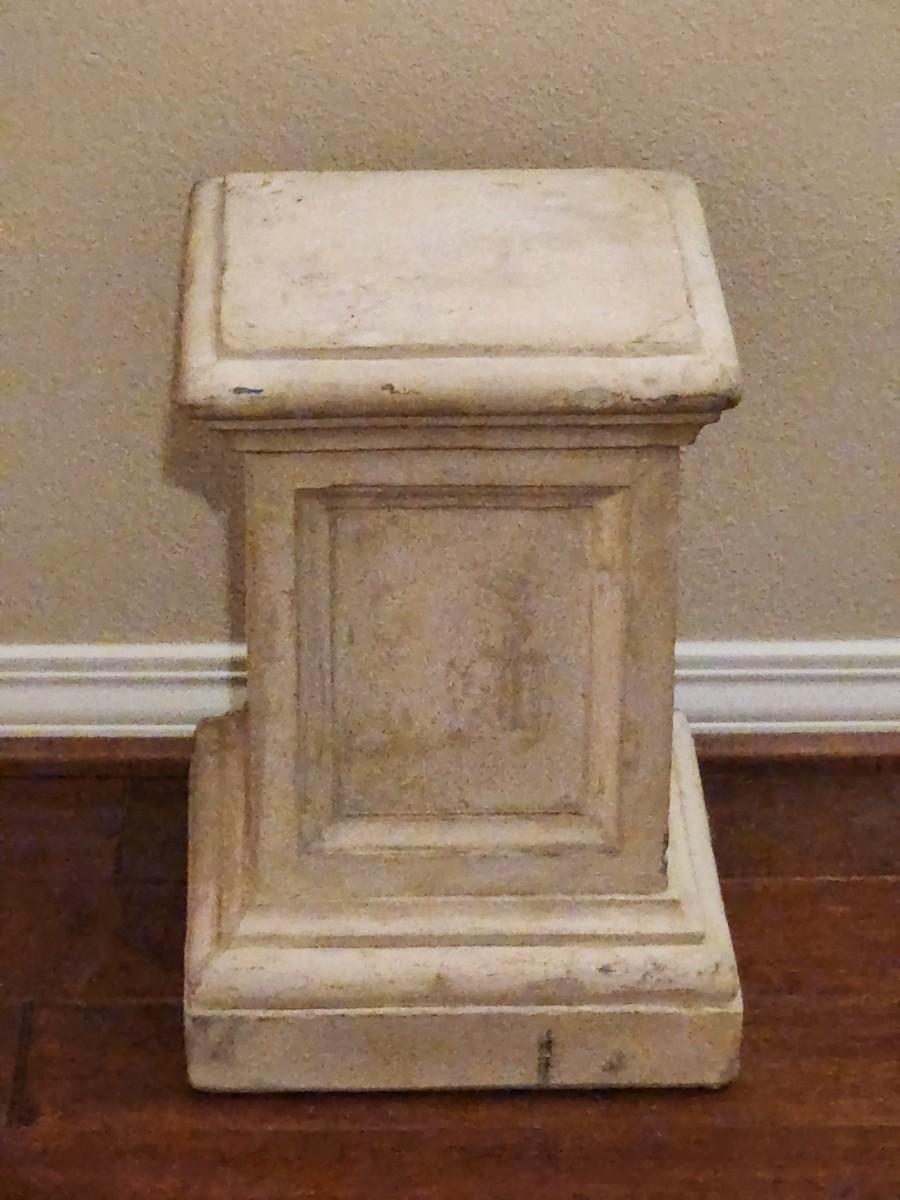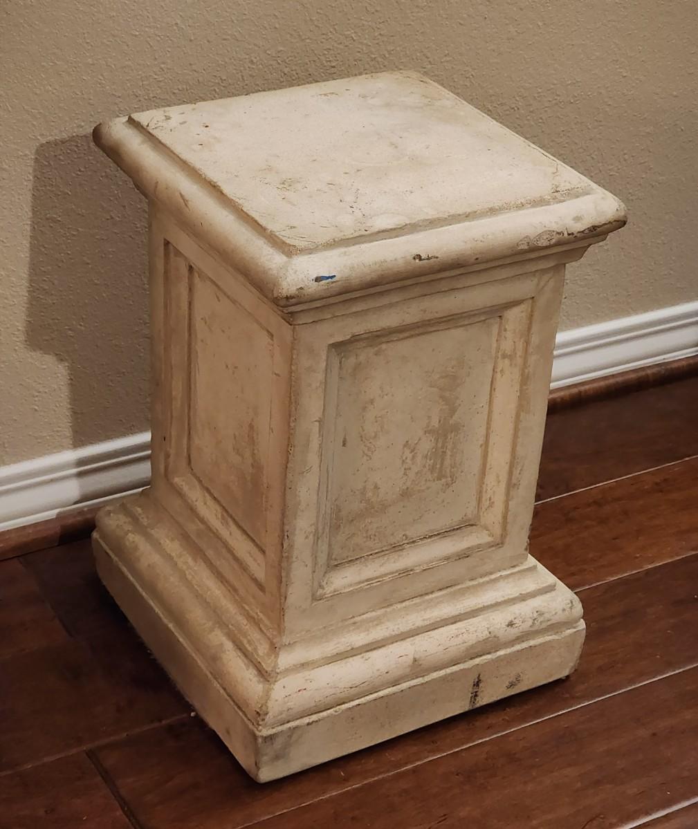 16.5" tall, 11.5" square at the base. VERY heavy. Bring a dolly and someone to help lift when you come to pick up.