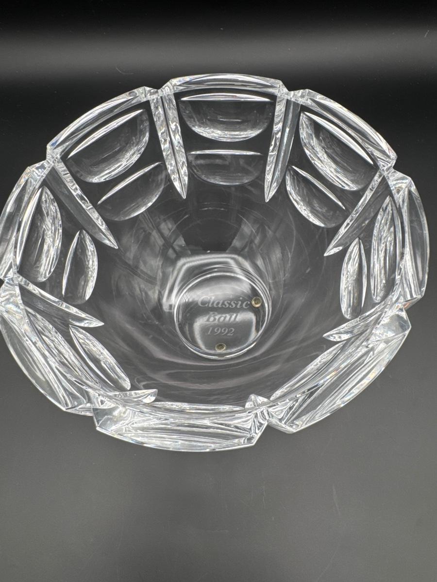 Cut crystal bowl with leaf-style facets and “Classic Ball 1992” etched in the base. Heavy, clear, and in excellent condition.