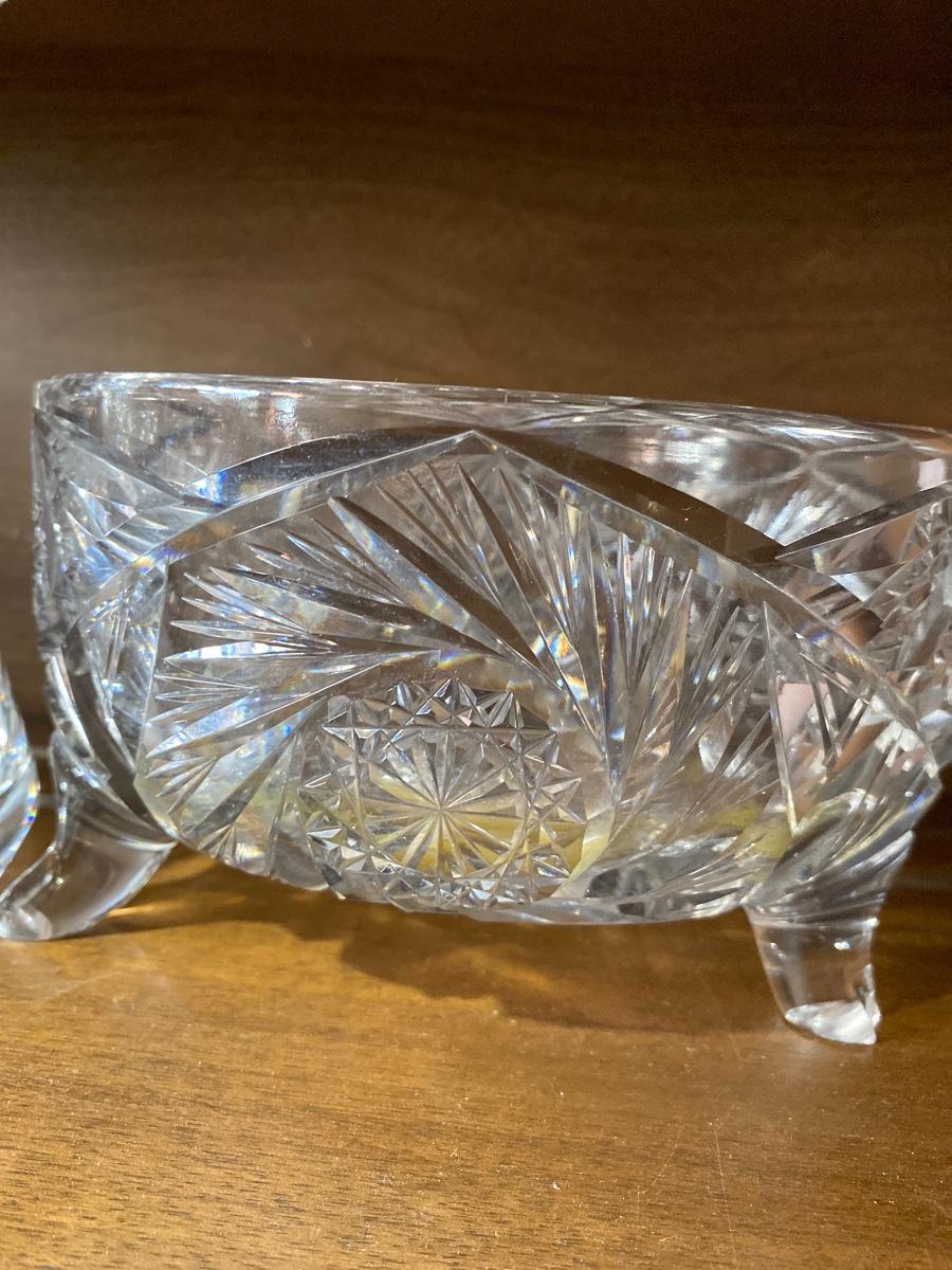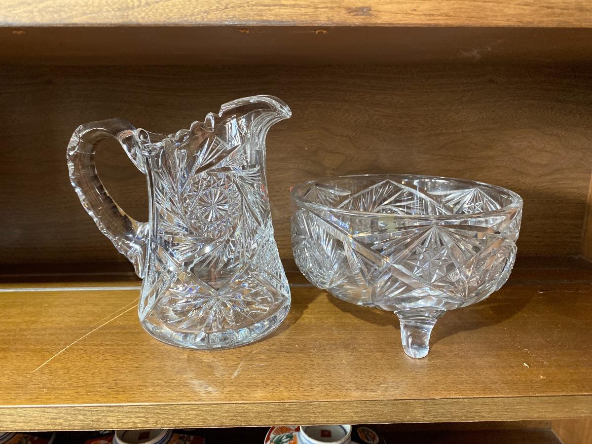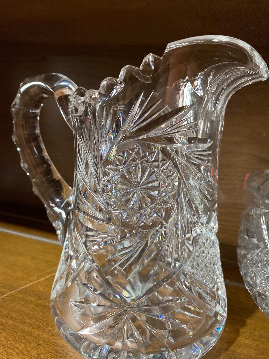 Heavy Crystal Cut Glass Pitcher And Bowl