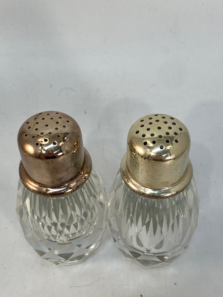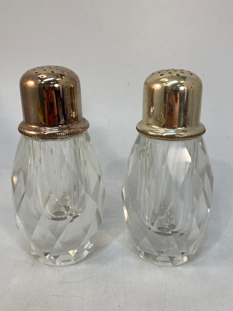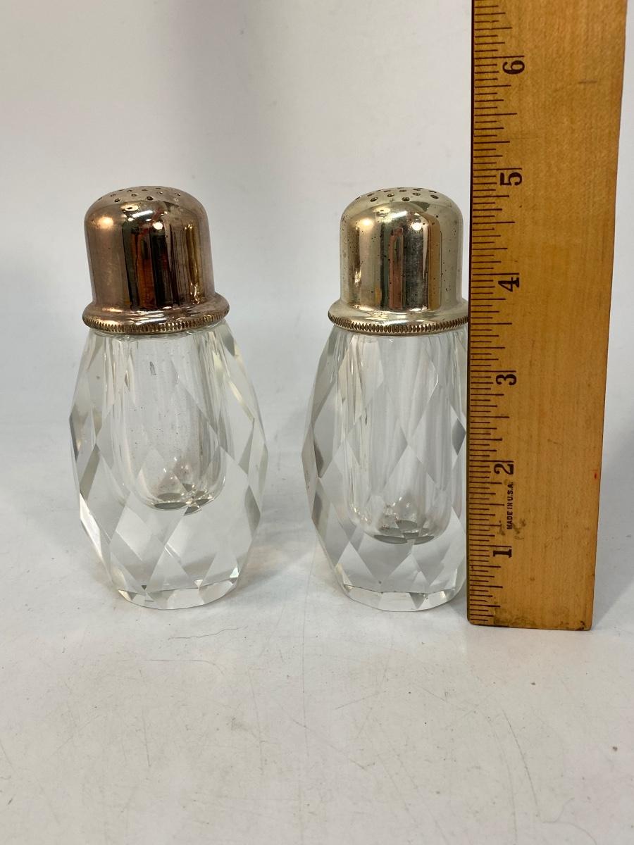 Heavy Crystal & Silver Plate Salt and Pepper Shaker Set Post House Japan